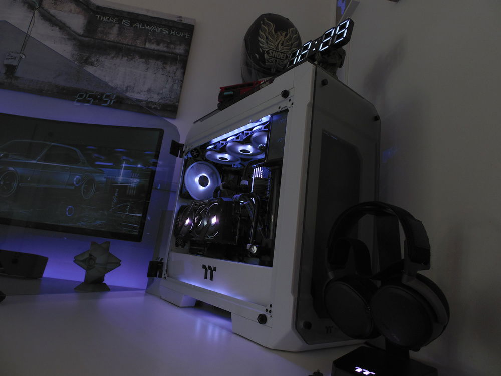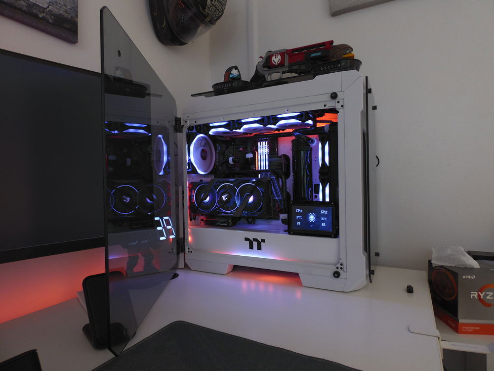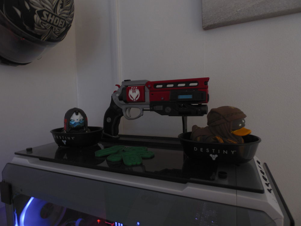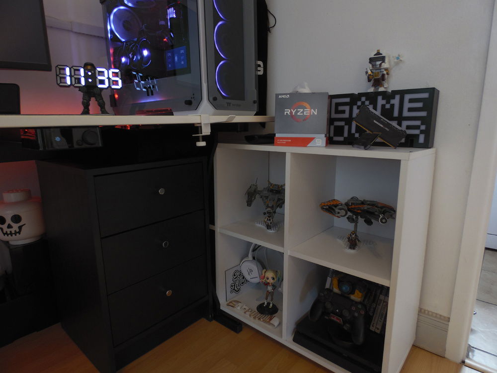 Doing all this the set up needed a clean up and added couple little personal touches/querks to reflect my personality a little more which were the addition of a personalised Destiny Ghost, Master Chief holder/clock and turned my Ryzen9 box into a tissue box just because well, it wasnt being used for anything else lol.