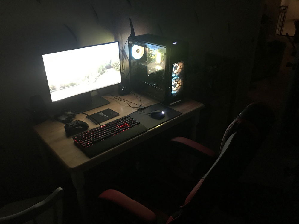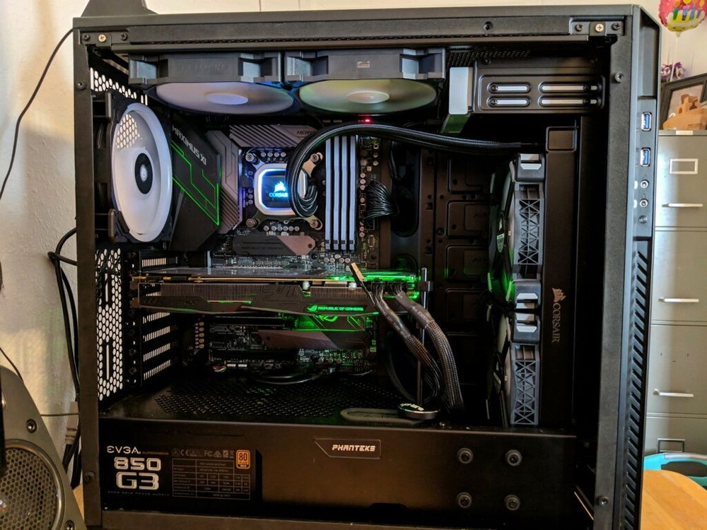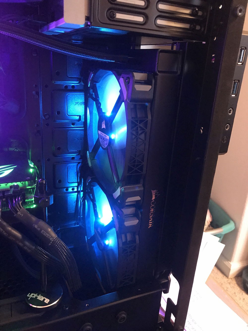 This was a project of my wife’s. She got sick and tired of a slow netbook she used so I said to go and build a computer. Just stay under $2000. She ordered the phanteks case and dvd drive and keyboard. After that, a switch flipped and I “had” to get involved. The price more than doubled and we now have what this beast is today.