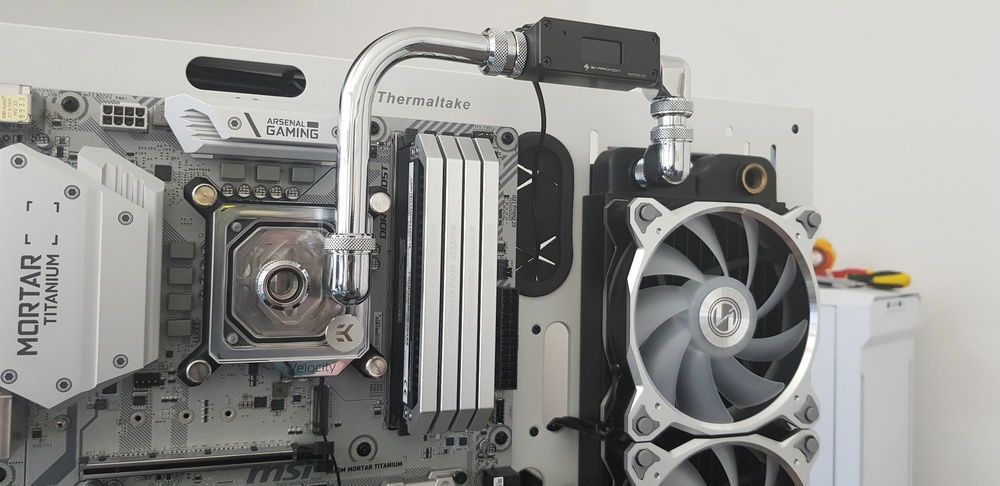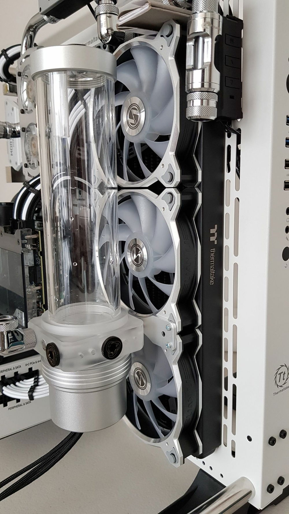Testing so far has proved decent temperatures -- GPU 25c/52c | CPU 28c/60c (ambient 21.5c), fan speed around 900RPM is whisper quiet. Credit to the EVGA HC block, it is a fantastic product with all the thermal pads pre-applied.