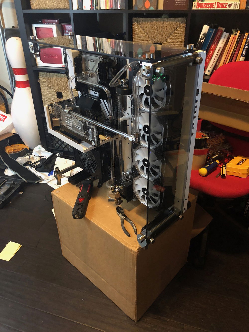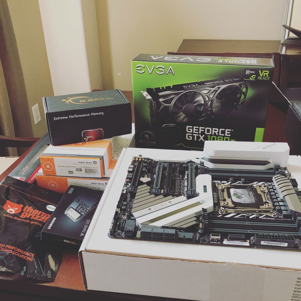 Thermaltake Core P5 Arctic Edition ASUS PRIME X299-DELUXE LGA2066 Intel® Core™ i9-7900X Processor (5.0 gHz) G.SKILL Trident Z DDR4-3200 (PC4-25600) (64gb) EVGA GeForce GTX 1080ti SC2 Black Edition Samsung SSD 970 EVO 500GB Corsair HX1200i Power Supply
