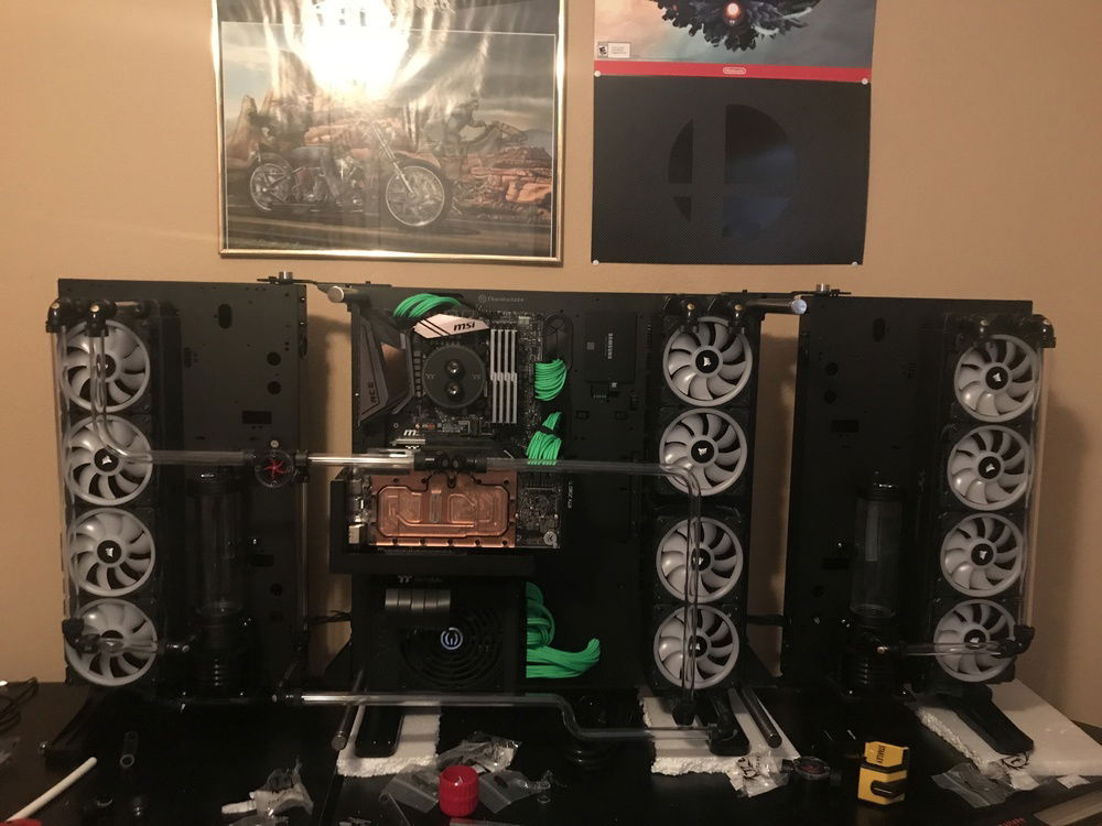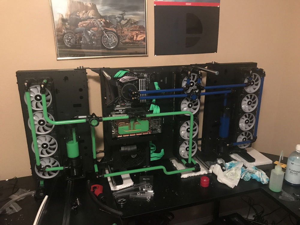 She is up and running. Only thing left is getting the bubbles out of the GPU loop and waiting on a USB header splitter for my cpu block RGB.
