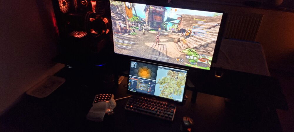 150 cm monitor/case stand custom built to fit my desk, with a big desk mat 1500x800mm