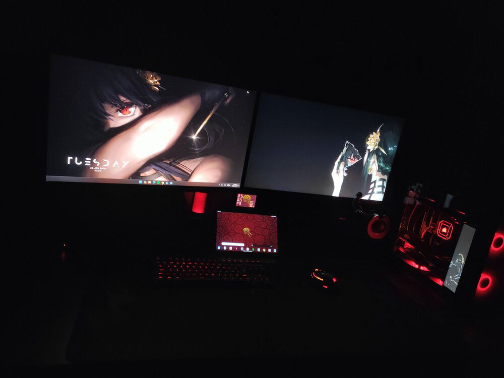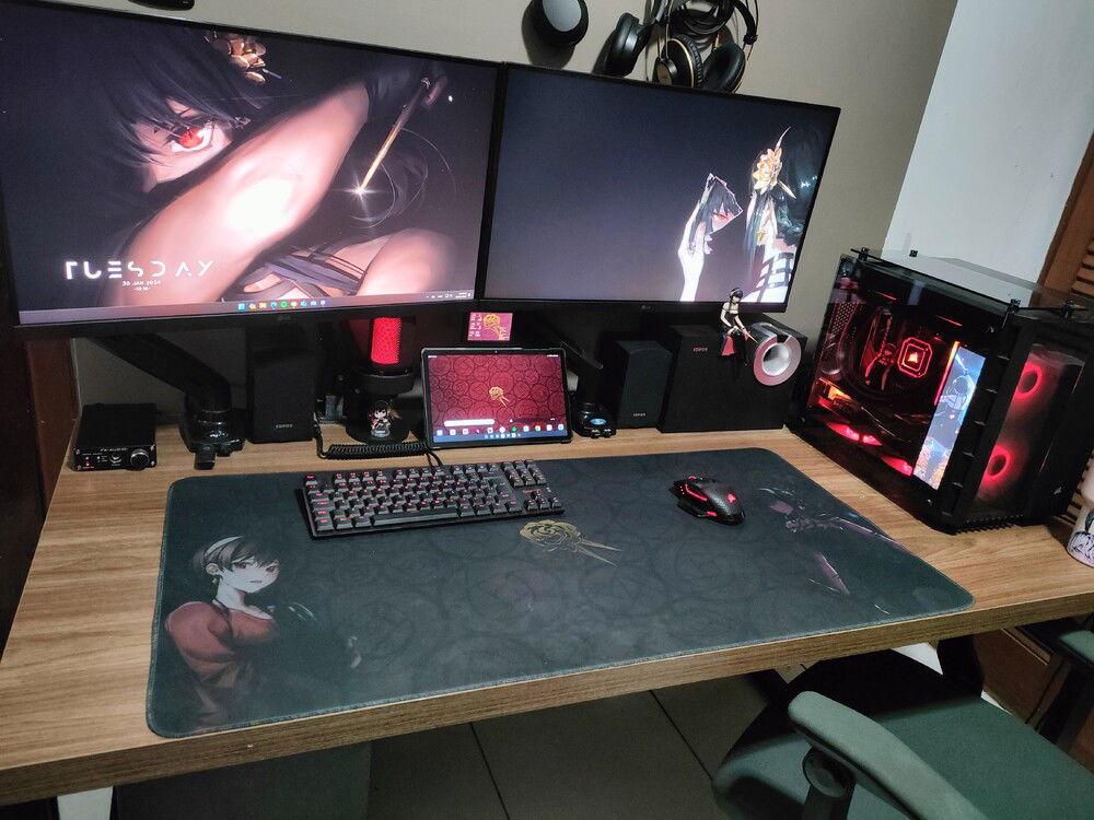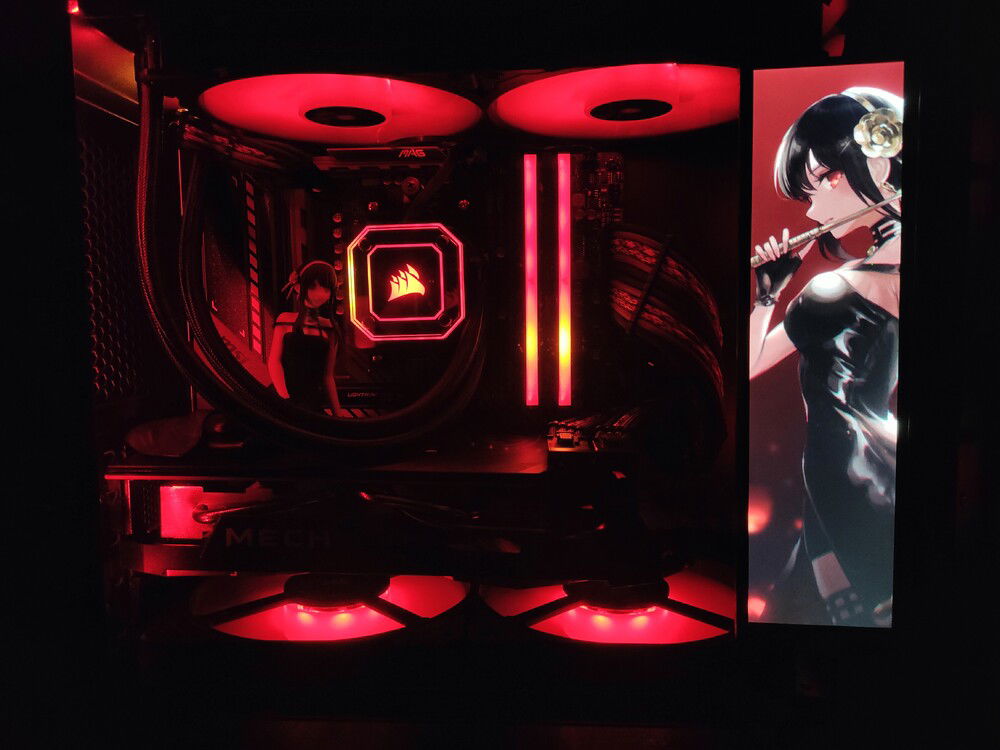 So much stuff changed since my last update that I thought it deserved a new profile, Since I changed the motherboard the camo pattern cables may seem a bit lost but in the future I may change something to match them more (accepting ideas) as I still like their aesthetic when all the RGB is turned off. I used my 3D printer to make spacers for the glass and feet, raising the clearances for better airflow and also avoiding sucking in dust from below. I also intend to print a Thorn Princess/Yor Forger stencil for the glass just like I did before with the zero two theme.