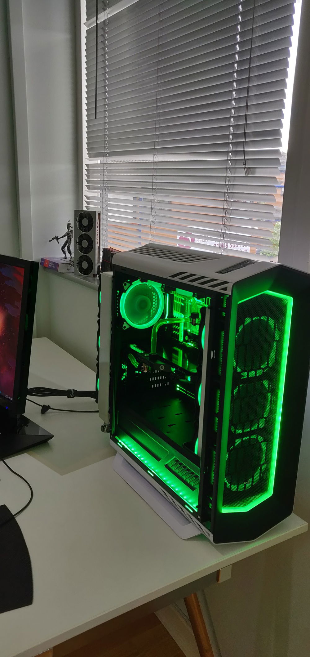 The rear radiator hides the horrible cabling coming out the back when the PC is viewed from the side.