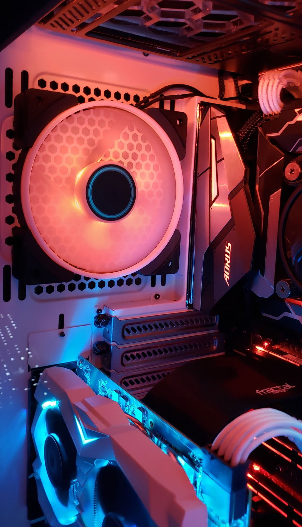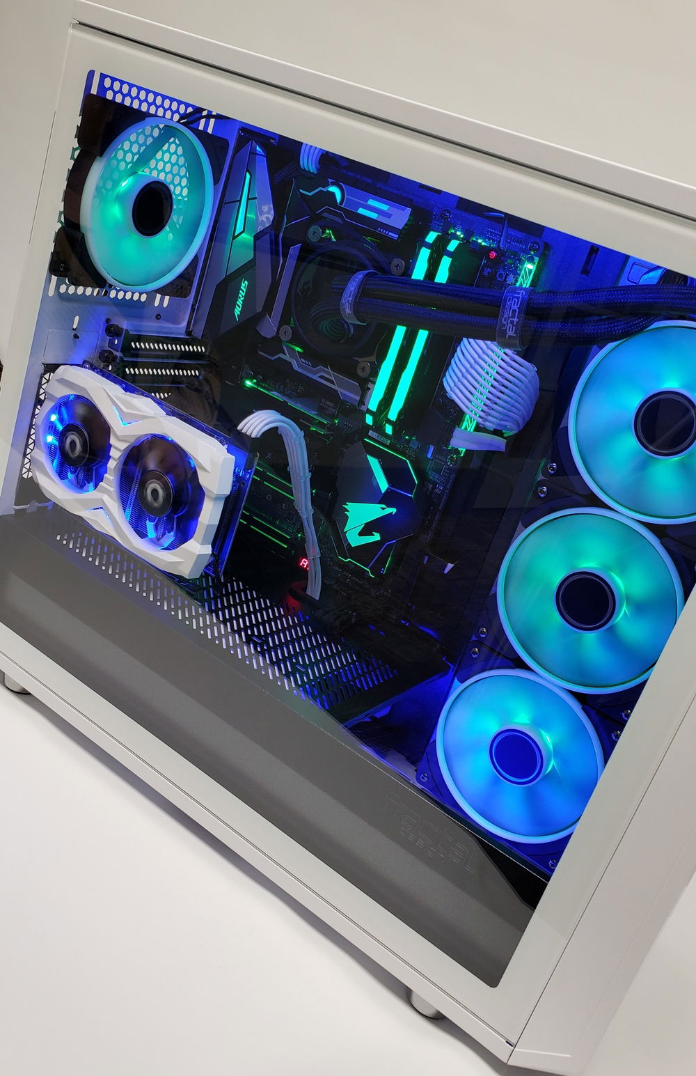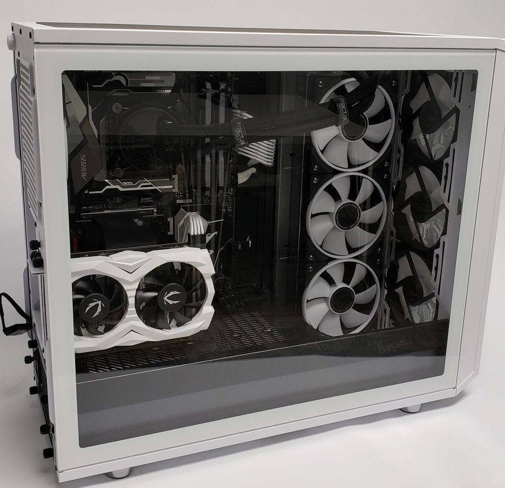 Fractal Design (Meshify S2, tons of Prisma AL fans, vertical GPU mount, 750W Integra M(not in part selection), S36 AIO, and the whole contest!) - Shawn was awesome to work with while collaborating on ship dates/build dates, thanks a ton! Zotac (GTX 1660ti) - You guys make a pretty beefy, highly-modable, powerhouse of a card - in a tiny package! I was thoroughly surprised by the 1660ti! Cable Mod Cables/Sleeves - Cable management was a breeze! Side note: You can use the AIO cables as cable wraps! Lots of the Cable Mods aren't available to select but I used the basic extension kit - white. I also had the technical expertise of some close friends to help with prototyping.