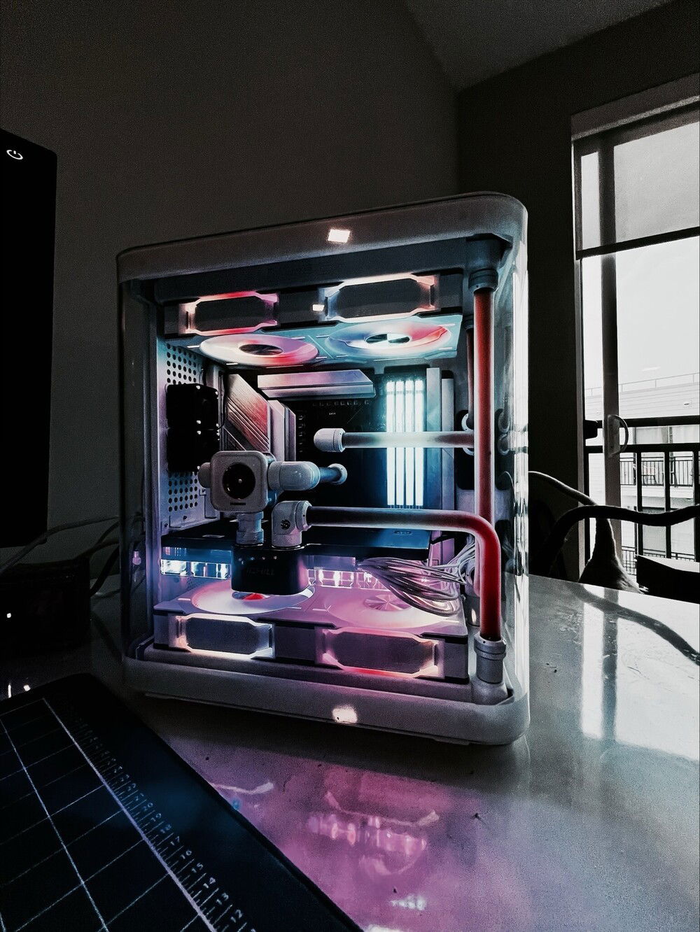 Reusing 12TB of M.2 + SATA SSDs from previous system. Upgraded the other stuff! Parts are approximate on here because not all components were available to select. INNO3D iCHILL FROSTBITE ULTRA 4090 + AMD 7950X3D. The CPU is delidded and uses liquid metal.