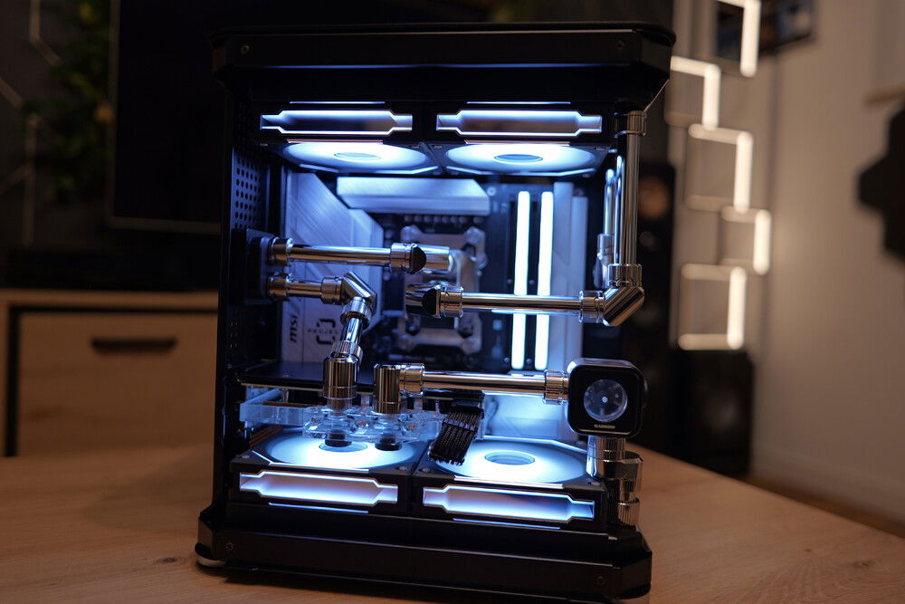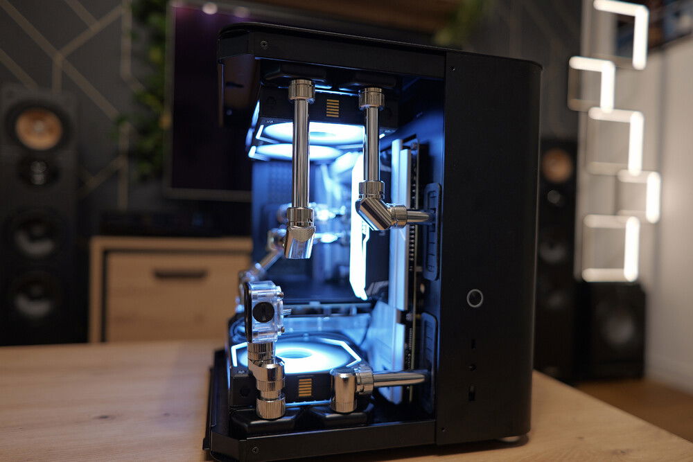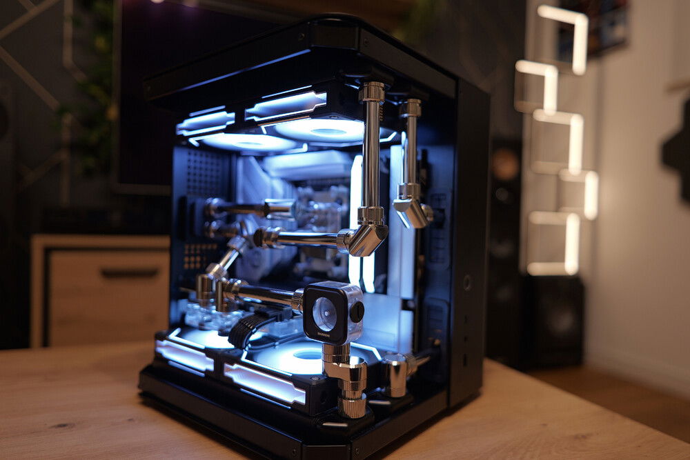 I liked the Jonsbo TK-1 straight away, as it has an unusual form factor, is nice and compact and also allows the use of mainboards with rear cabling. When I saw that it was possible to install a complete water cooling system in it, I was immediately hooked.
