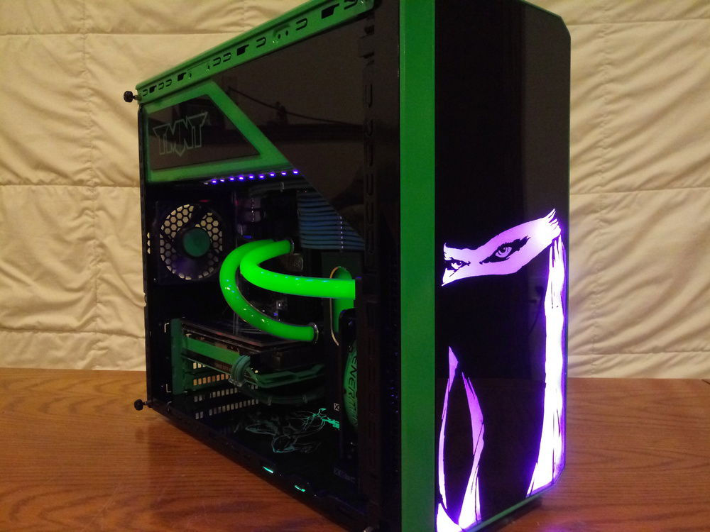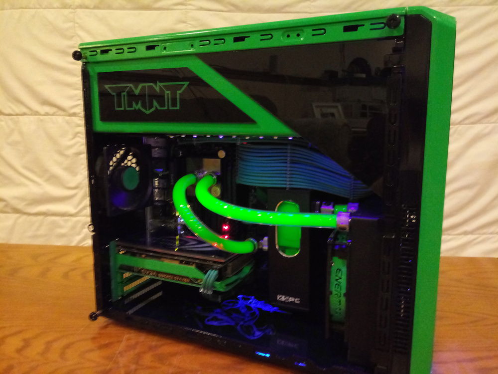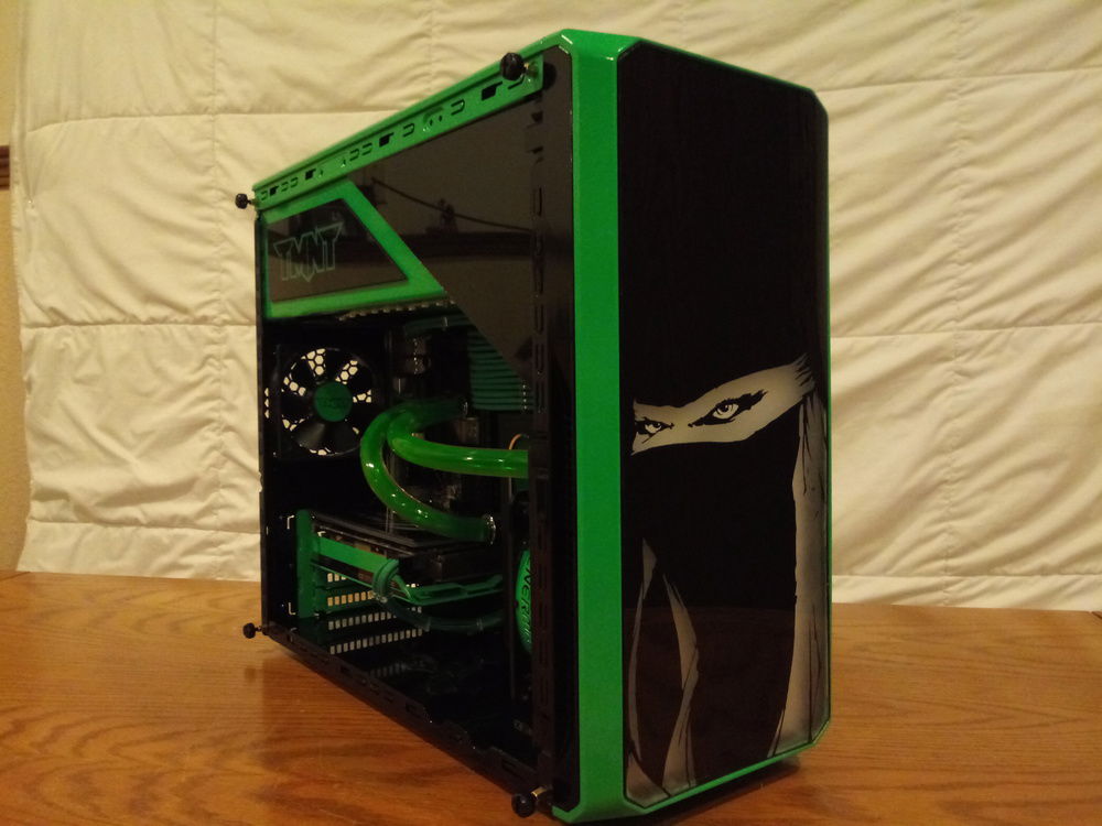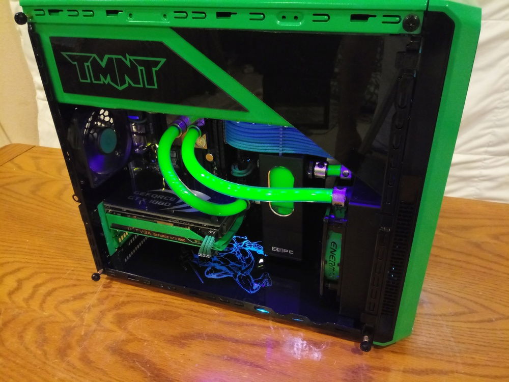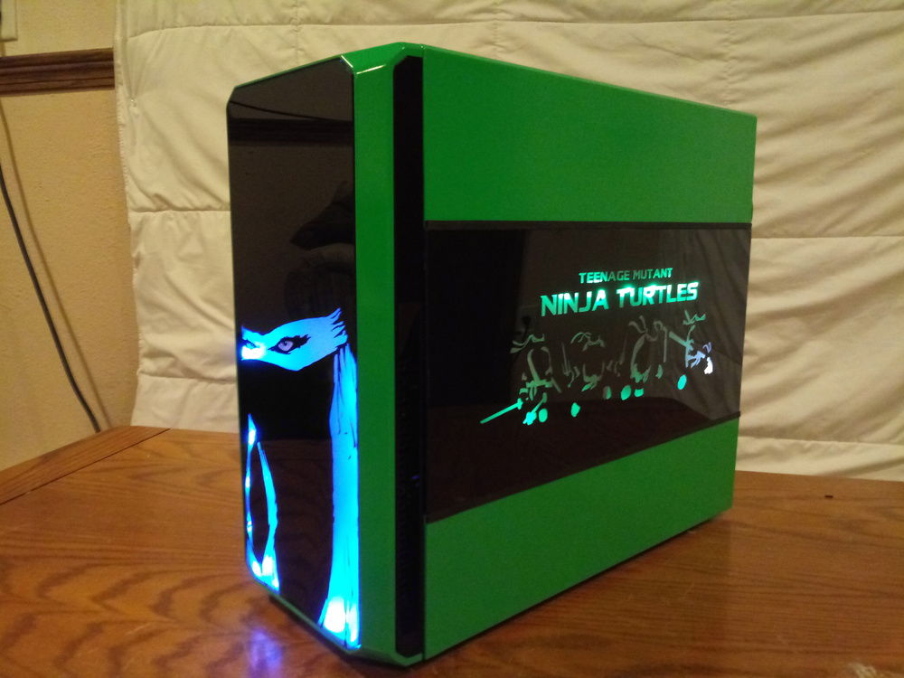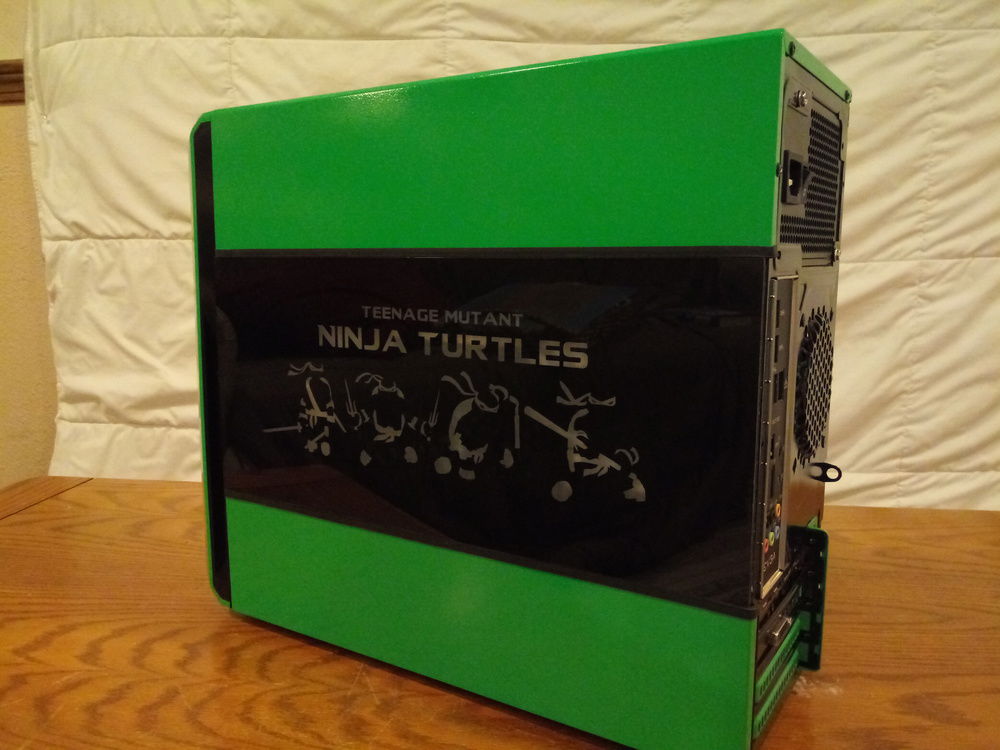 My son will be turning 4 in a few months and wants a Ninja Turtles PC. The case is a repurposed Dell Vostro 230. Still a work in progress, I have to make a side panel for it and tidy up a few things.