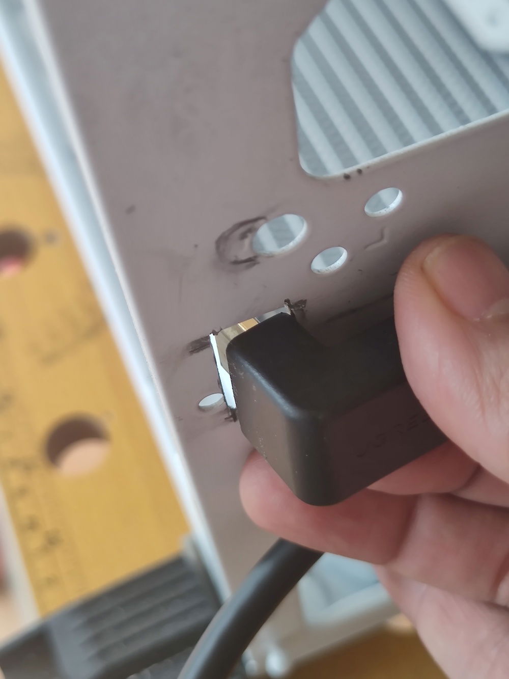 On the other hand, reversing the bracket, with the edges facing upwards, enabled me to save another 1-2 millimeters, with only minimal additionalmodding to the top plastic panel.