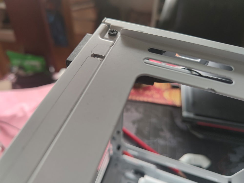 My first idea was to mount the side bracket with the edges down, to clear the metal on the front of the case and avoid having to cut or interfere with the plastic top panel, with the hope that I could still fit some fans on top, or change the configuration in the future.