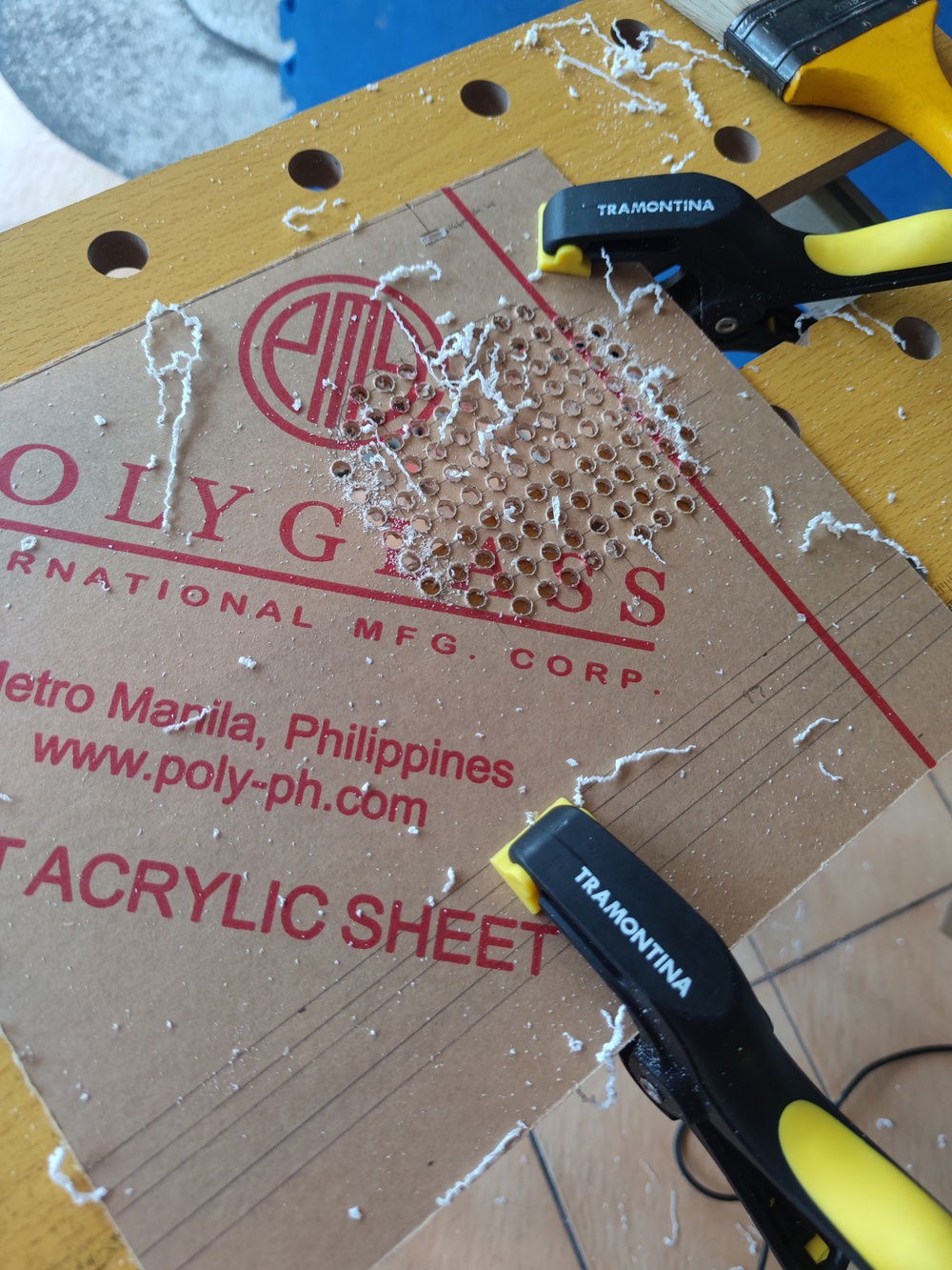 I first drilled into the corners of the acrylic so I could fit the jigsaw blade and cut out the 3.5" hole. I ultimately cracked the side of the frame and had to start over.