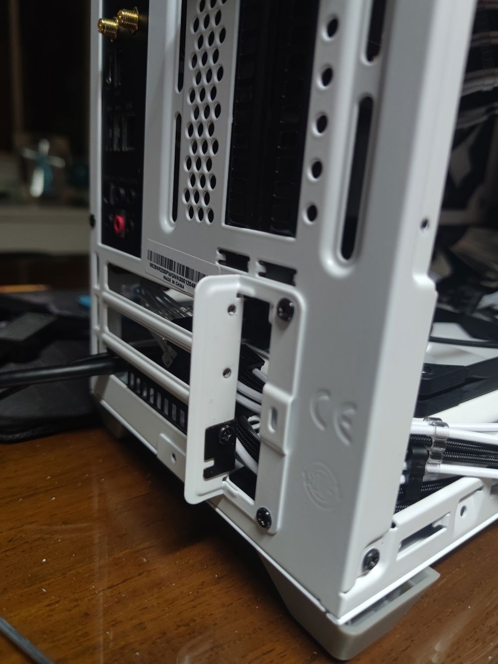 The NR200P supports 2 locations for the SFX power supply, and I was choosing between the two. I ultimately found that the side placement of the PSU cage took up too much space and placed the internal LCD too far away from the glass side panel.