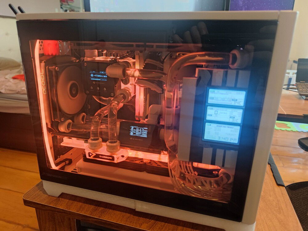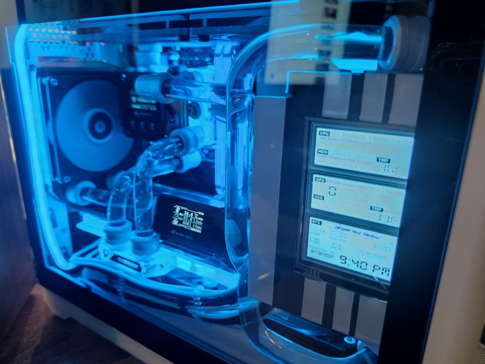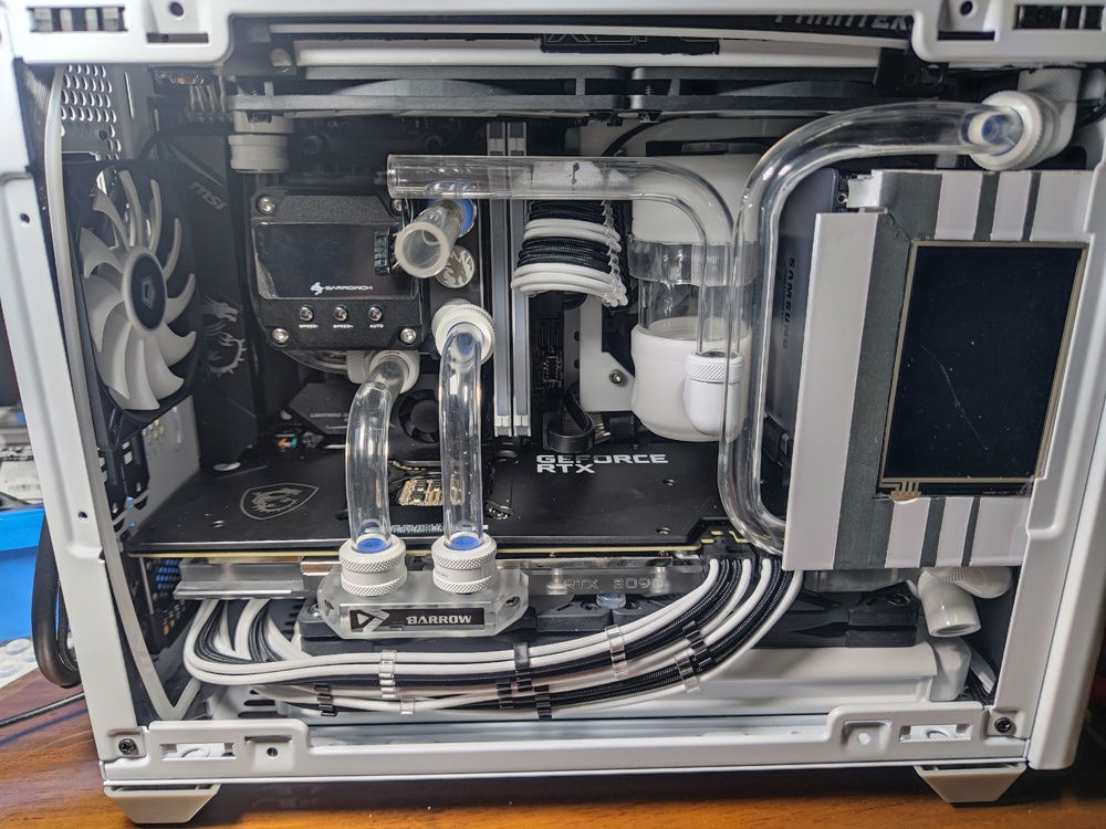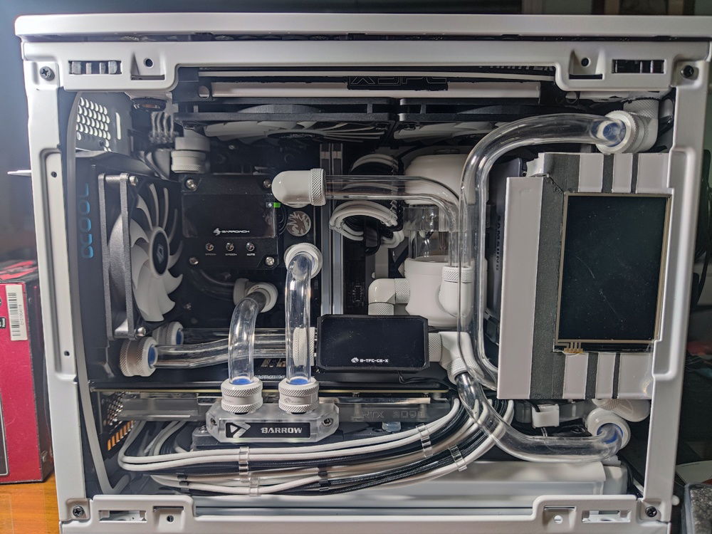 When my rear radiator was delayed in the mail, I was seriously considering just completing the loop without waiting for it. This is the turning point of my build where I was deciding whether to just connect the two tubes you see crossing each other and just rebuilding when that last part arrived.