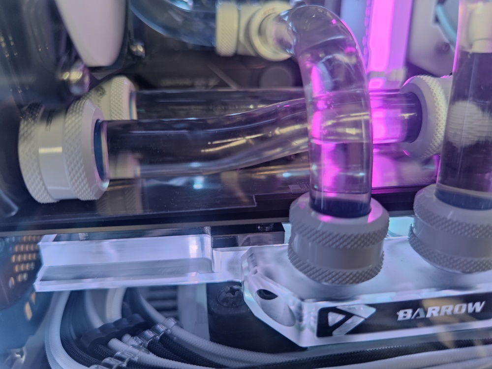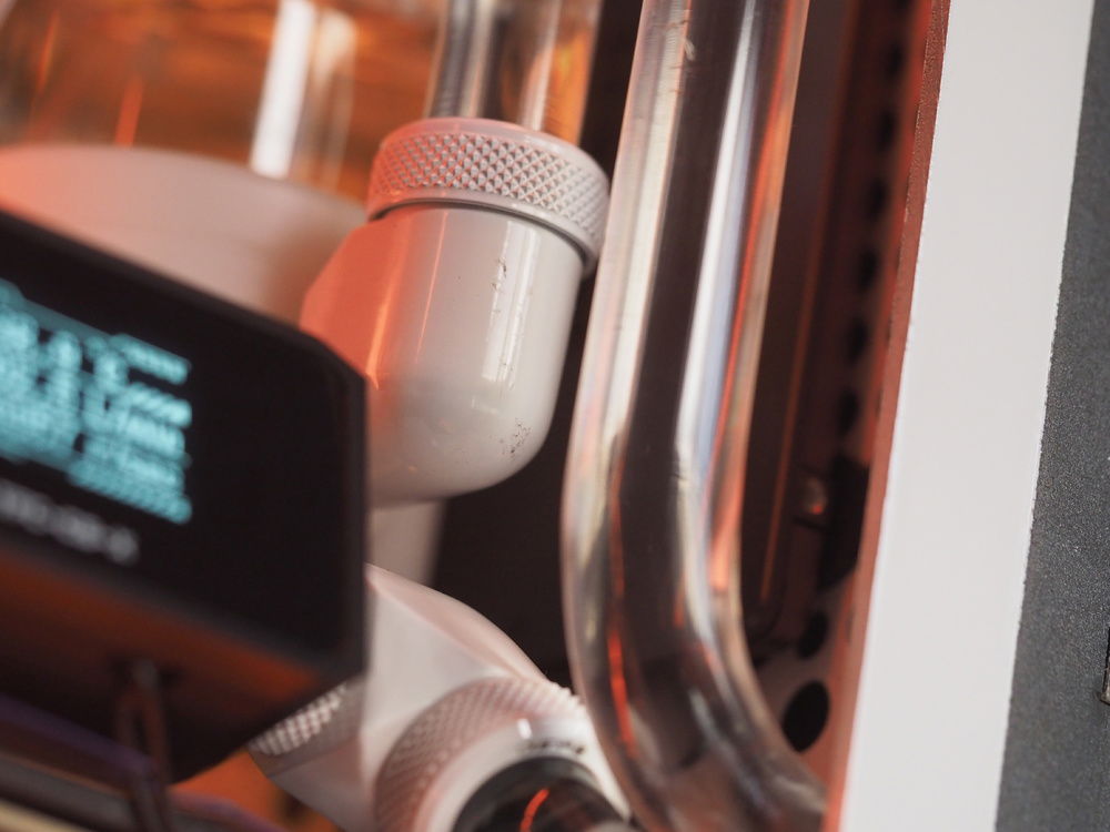 The top to bottom rad tube also had to clear the outlet tube which would have to clear the VGA power cables and reach up to above the GPU to run towards the rear of the case.