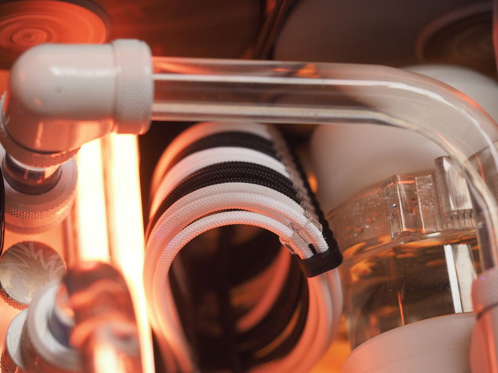 I went with compressible PSU cables to create enough space below the PSU. The original plan was to route the tubing below the PSU cage, but there was no way to do that, as the fittings alone would not fit.