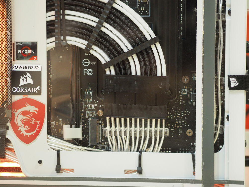 The rear panel was created to show off the sleeved cabling and cleaned rear portion of the case.