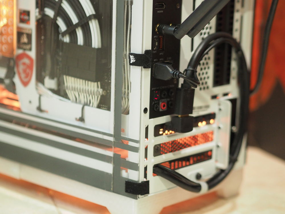 HDMI and USB cable pass through to the rear of the PC for connecting to the GPU