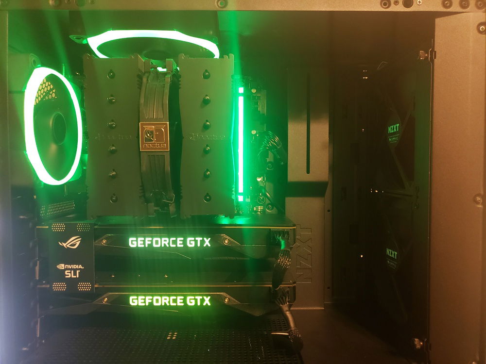 Featured: Two painted GTX 1080s. This system was built to embrace the powerful past of Nvidia SLI, a true future killer housing a twin 1080 configuration. The cooling of the CPU was 'compromised' to provide cool fresh air to the two founders GPUs (if you call a Noctua NH-D15 compromising)