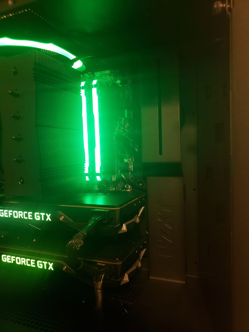 The RGB and general aesthetic of the build are to compliment the appearance of the graphics cards, and the vanity plate on the case will soon be painted aswell. This was my first go at a totally air cooled case, and I'm thinking about switching it to a 3 radiator tripple AIO design.