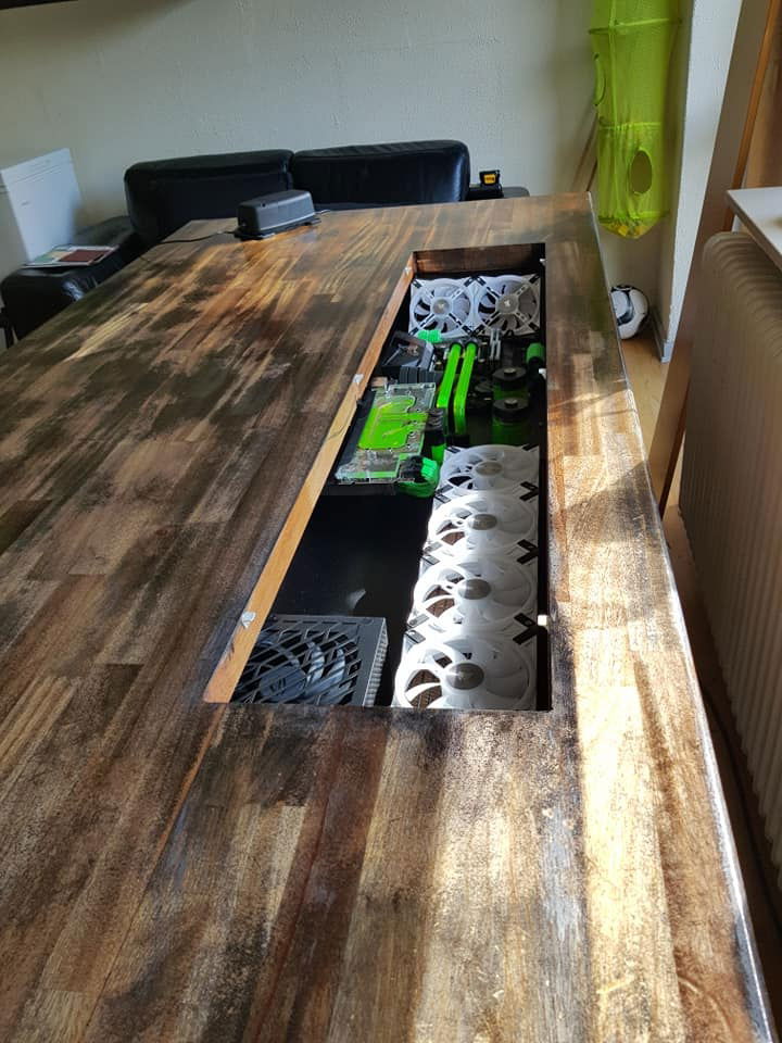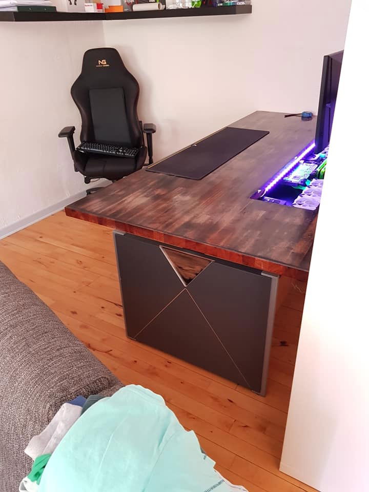 Hello everyone, in the hope that you will like it, I present to you my new PC built into desk,