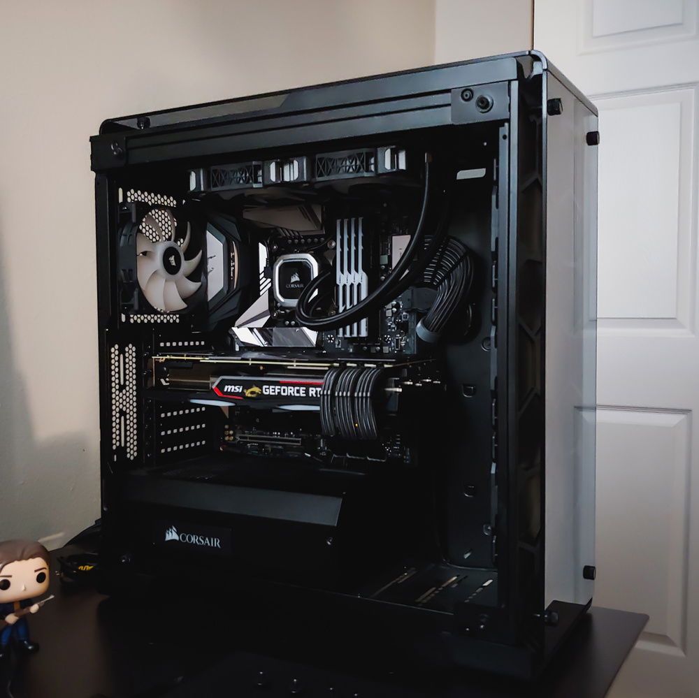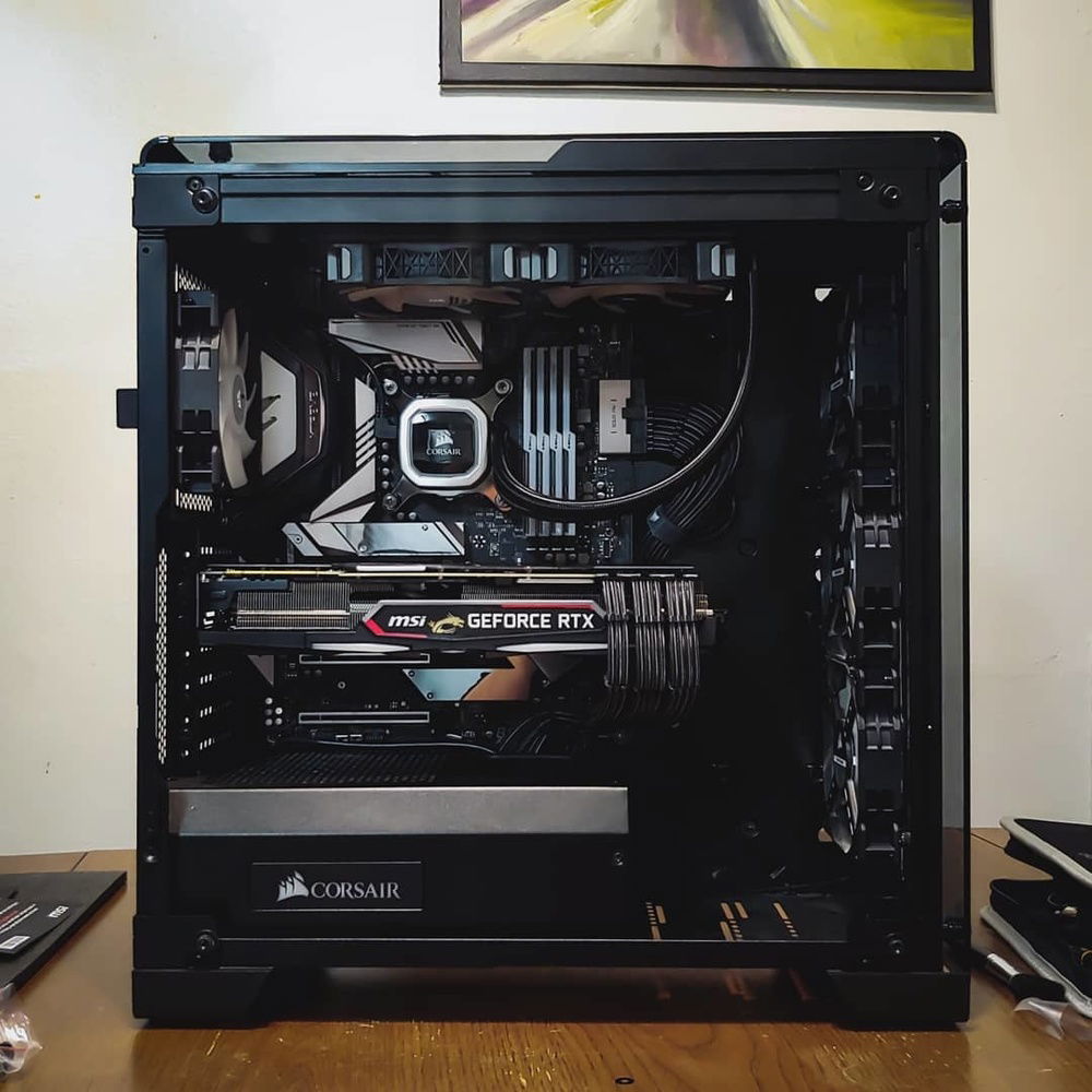 This build is mainly for high end gaming on 1440p 144Hz With 2080 Ti at 2130-2085 MHz. i9-9900K at 5.0 GHz it has no problem playing any game at 1440p Highest graphics settings. My goal was keeping it clean but aggressive at the same time. I like my RGB on it. I usually keep it at purple and blue.