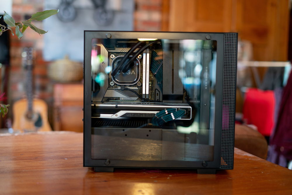 My favourite little PC build to date, after moving from a large ATX form factor Phanteks Enthoo Evolv even this enormous by ITX standard NZXT H200 feels compact. I really enjoy having the extra desk space, and the case is a breeze to build in, compared to other ITX offerings. Having difficulty with my FE RTX 2080 thermally however and might need to sidegrade to an EVGA RTX 2080 XC Gaming.