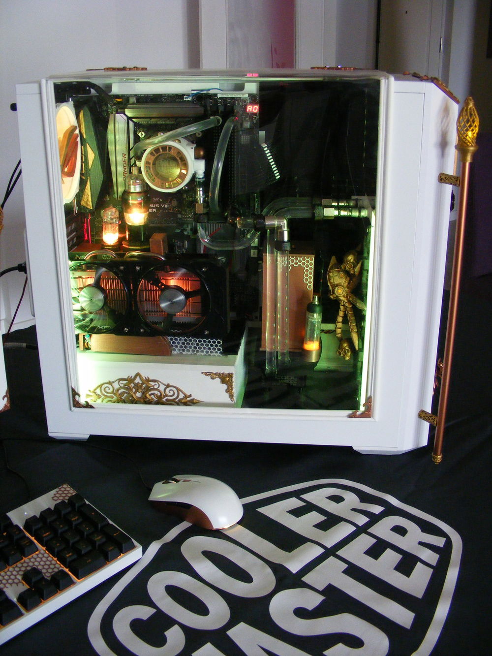 In this project I used a Masterbox 5 white version and created a water cooling system based on the custom material and at the junction of the masterliquidpro240 I used hardtube with soft tube to have the hard and soft aspect.