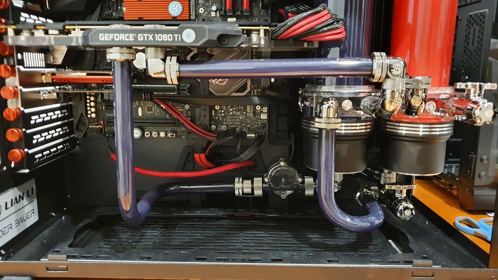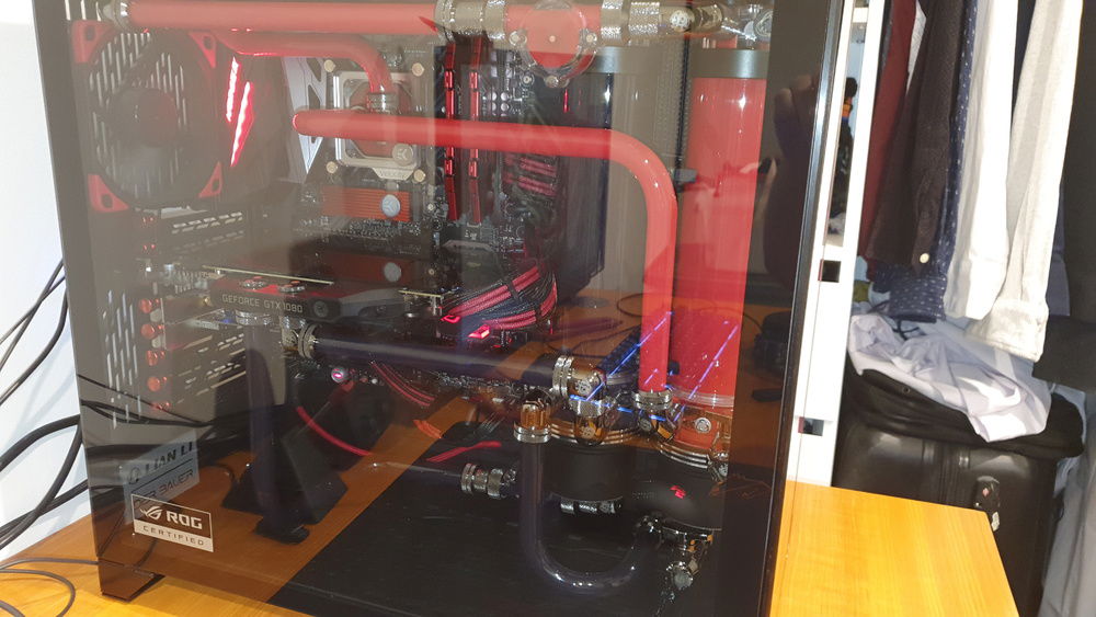 PC: Custom water cooled dual loop system with Noctua fans, Hardware Labs radiators, EKWB waterblocks, Singularity Computers reservoirs, Bitspower fittings, Mayhems Pastel Coolant.