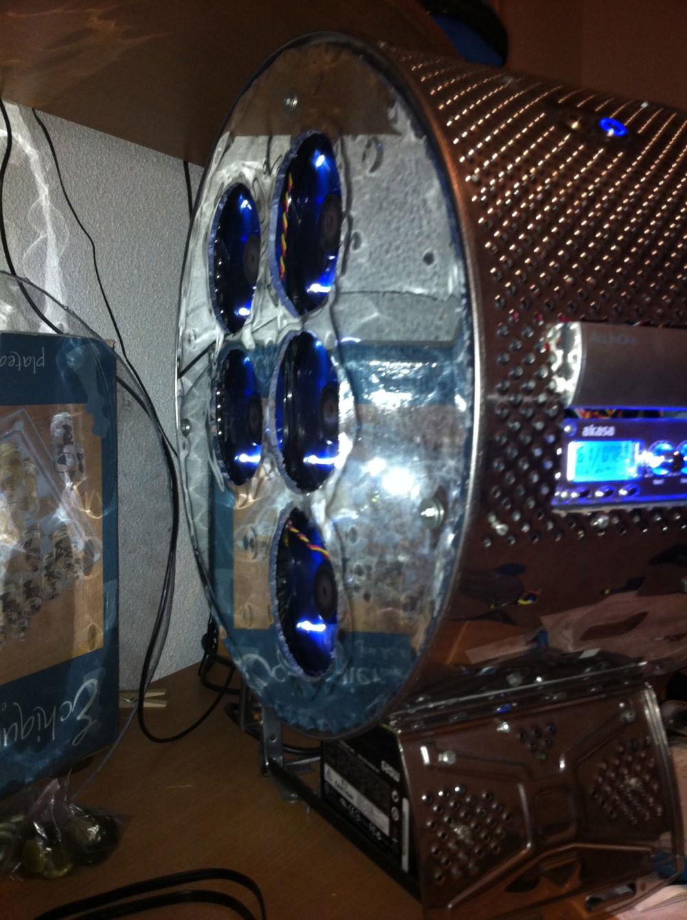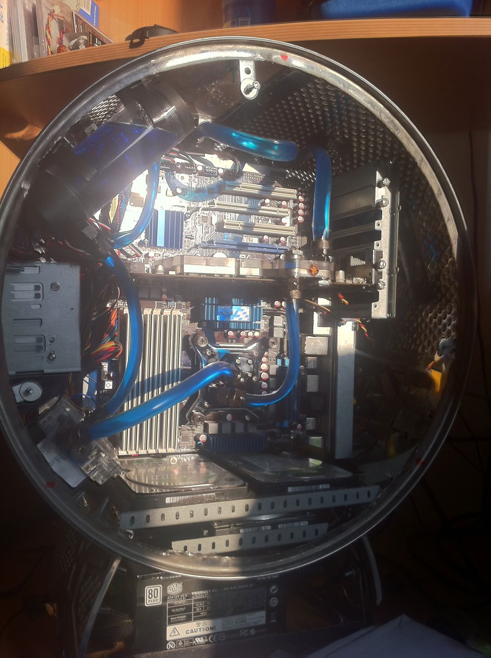 There's two radiators behind the motherboard one 360 and one 240 which made the thermals surprisingly decent (I still left the front panel mostly open) and the whole thing was very quiet.
