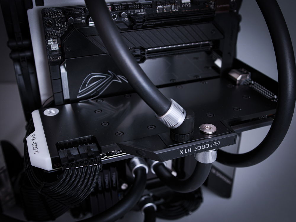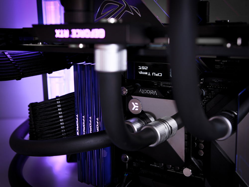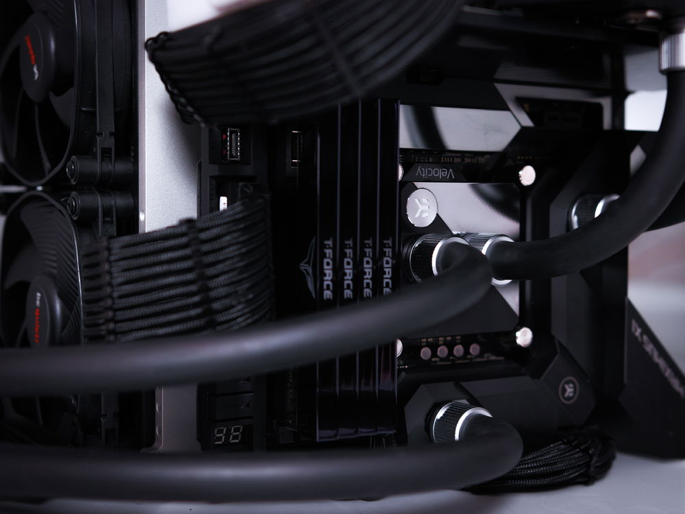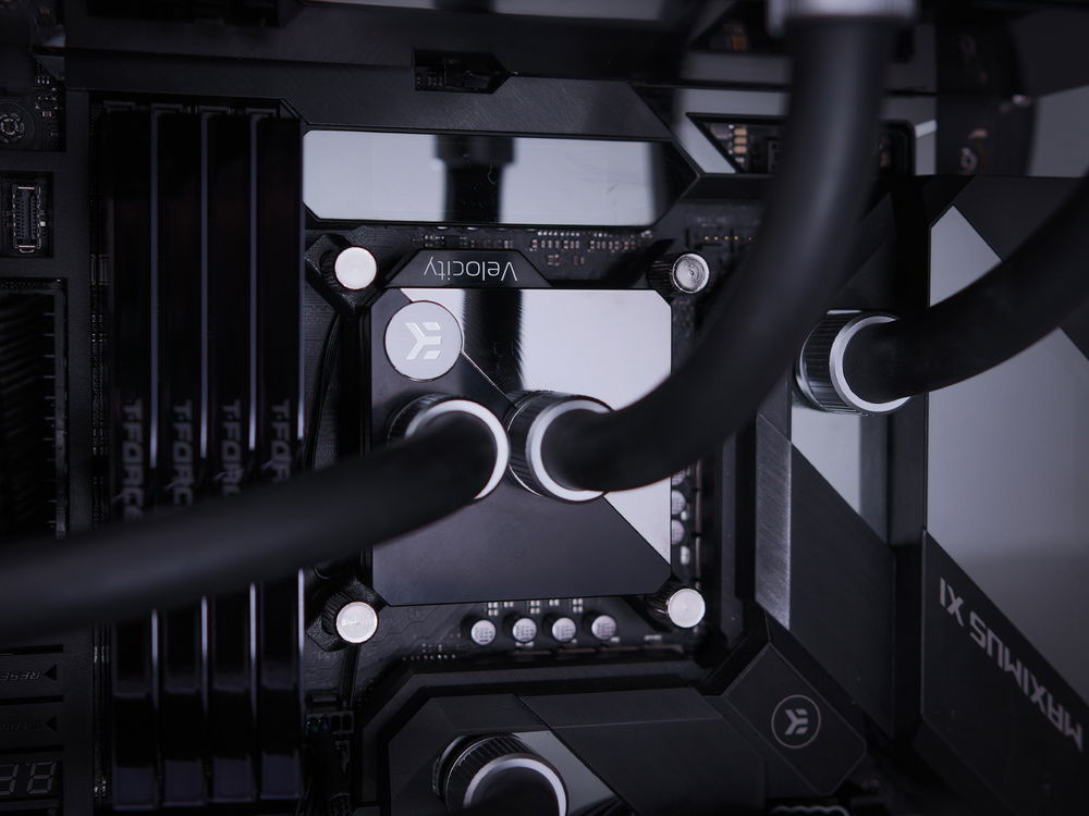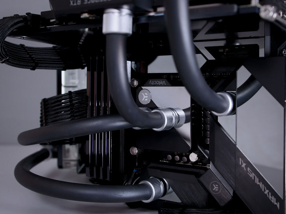 Once the radiators where attached, then all that was left was to connect the PSU cables to the parts, then do the plumbing between all of the watercooling hardware. This was a very simple task with help of angled adapters from EK Waterblocks Quantum Torque line of fittings, and some ZMT matte black tubing in size 16/10 mm. I love the industrial feel that this connecting hardware and tubing give off. Very much my style.