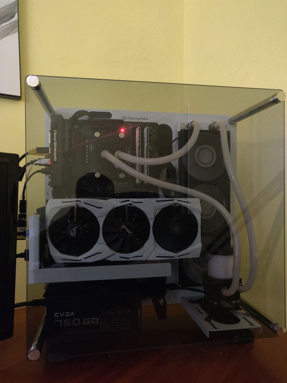 This is my custom white gaming PC in a Thermaltake Core P3 Snow Edition. The GPU, RAM, and radiator where all custom painted white.