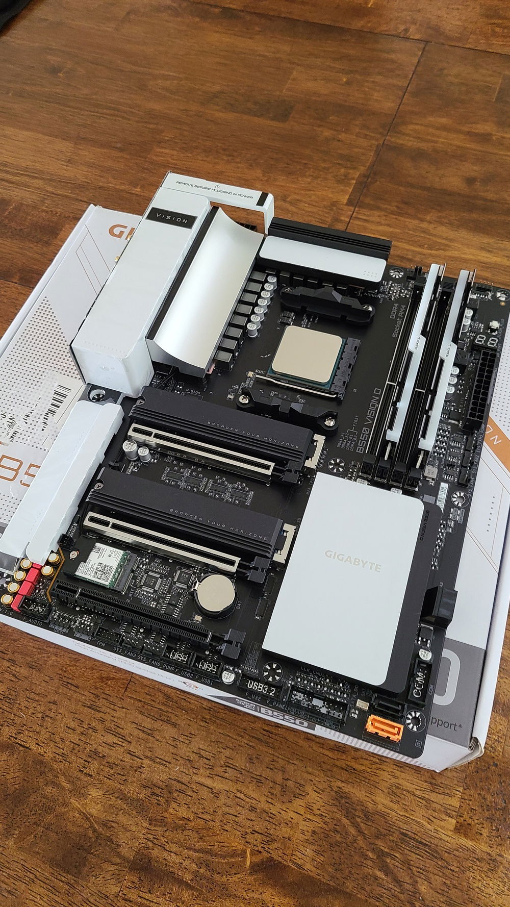 MOTHERBOARD: GIGABYTE B550 VISION D. The best looking motherboard on the market imo. PCIE Gen 4.0 is great. I love the year USB-C Thunderbolt 4 parts with titan ridge. If I upgraded to an external hard drive editing workflow down the line, the speeds would be excellent. I really wish this was an X570 and had a usb-c front panel so I could use that on my case, but I'll live. I rarely use the front panels on my PC, and have a hub on my desk so it's fine. If they drop an X570 version of this in the future, I may pick it up.