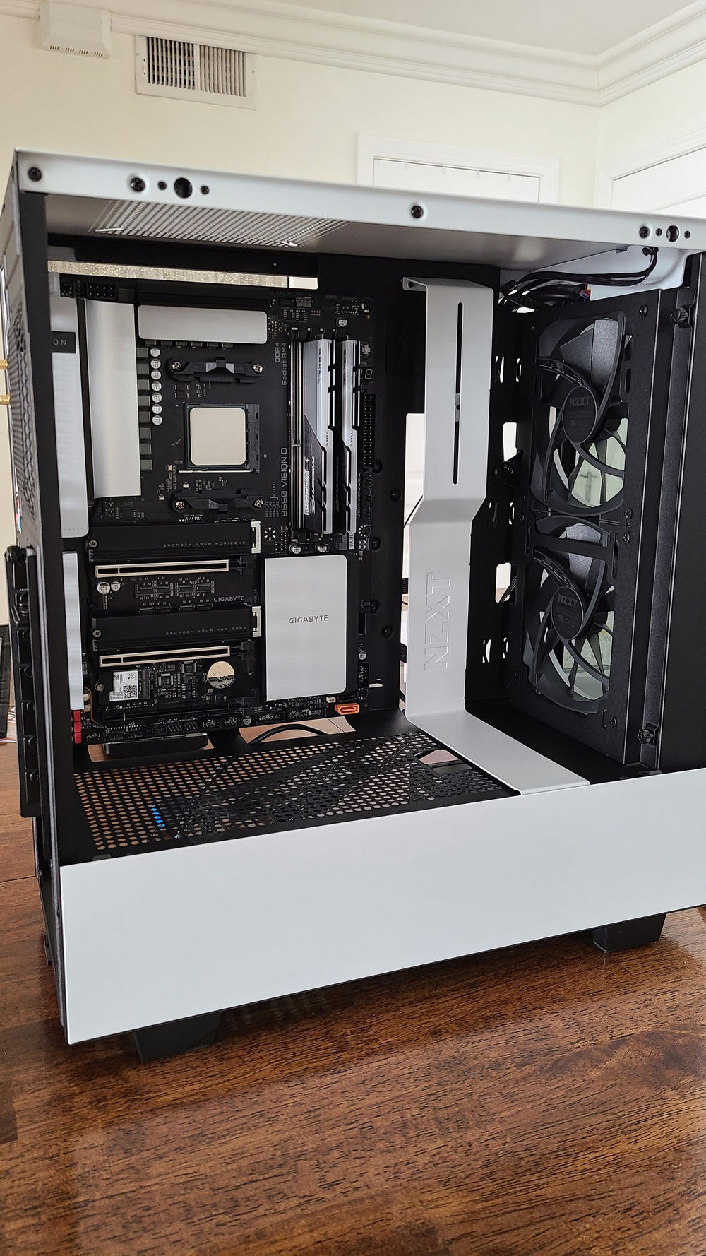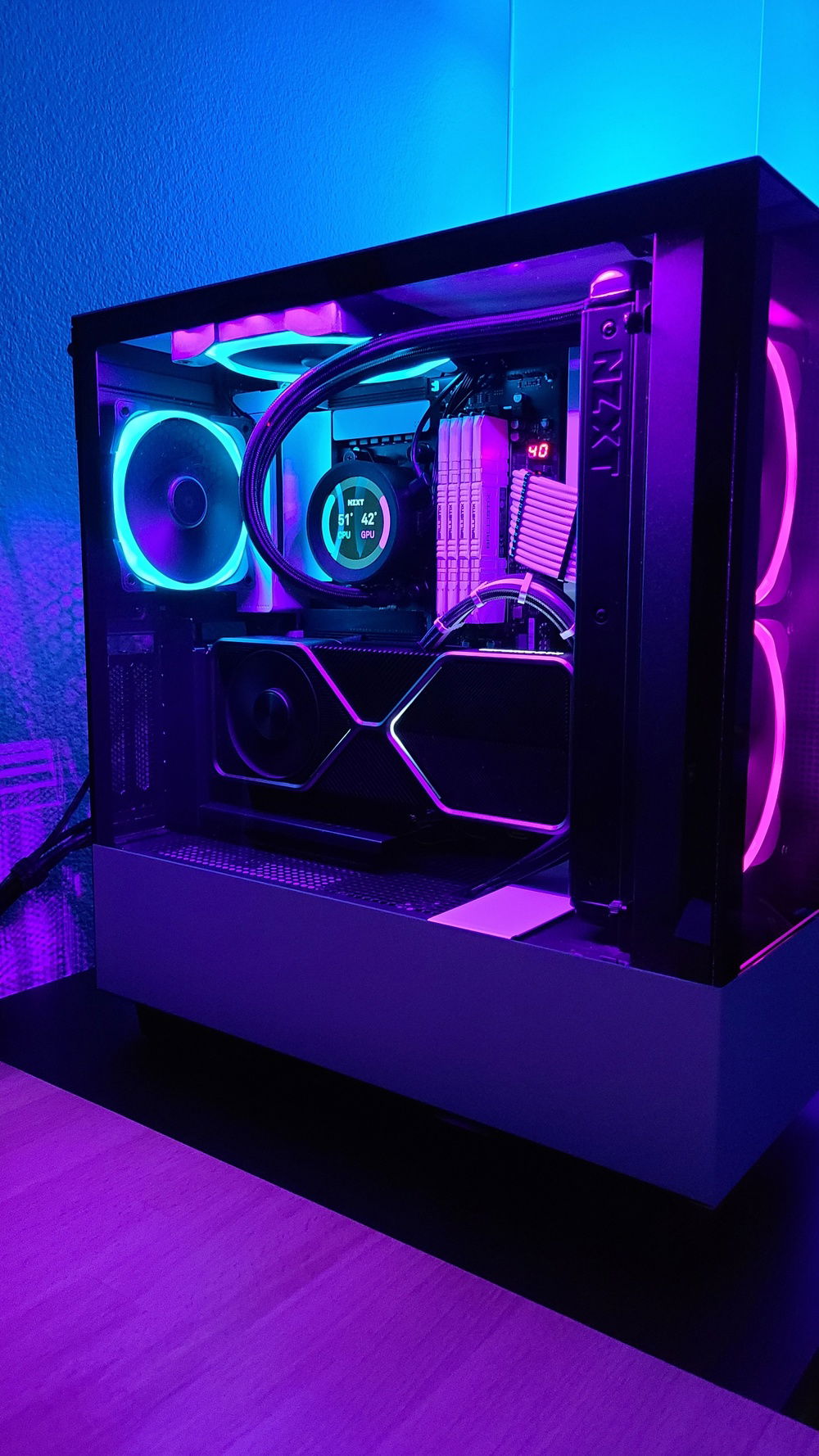 CASE: NZXT H510 ELITE This case is absolutely gorgeous, what can I say? I just love the NZXT design language. Despite the online rhetoric of poor airflow, since I'm using the AIO and an extra top exhaust fan (now included with the case -though I upgraded to the AER RGB) - I've not had any temperature issues. My GPU stays cool under extreme load ~72-75C, and my CPU stays around the same temps as well.