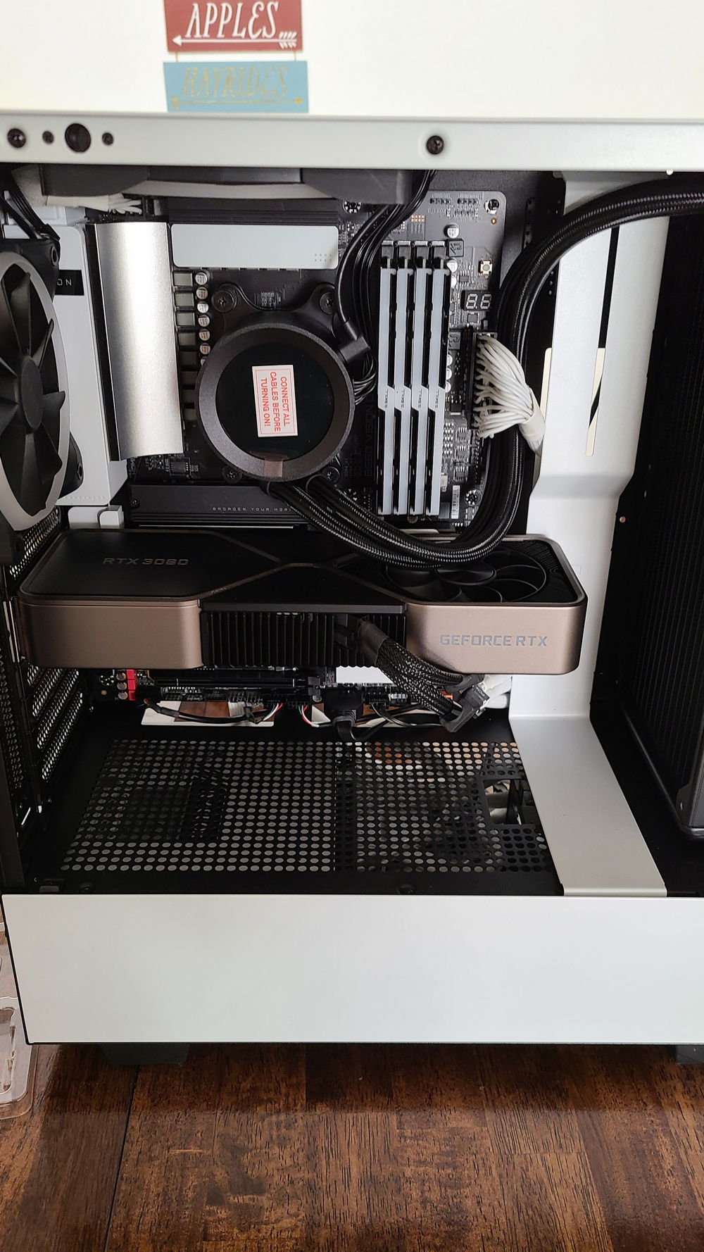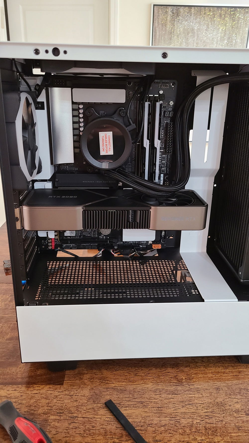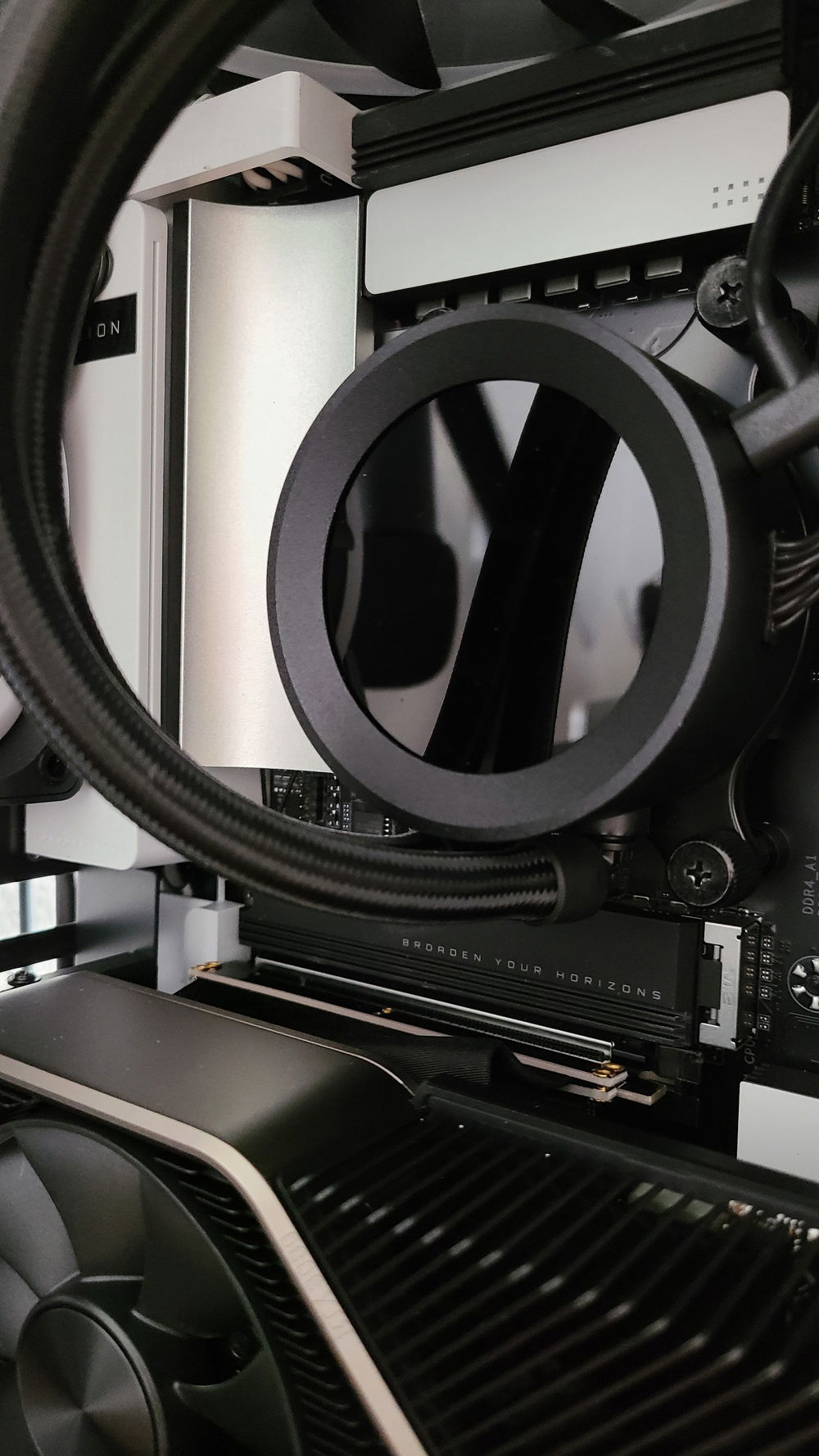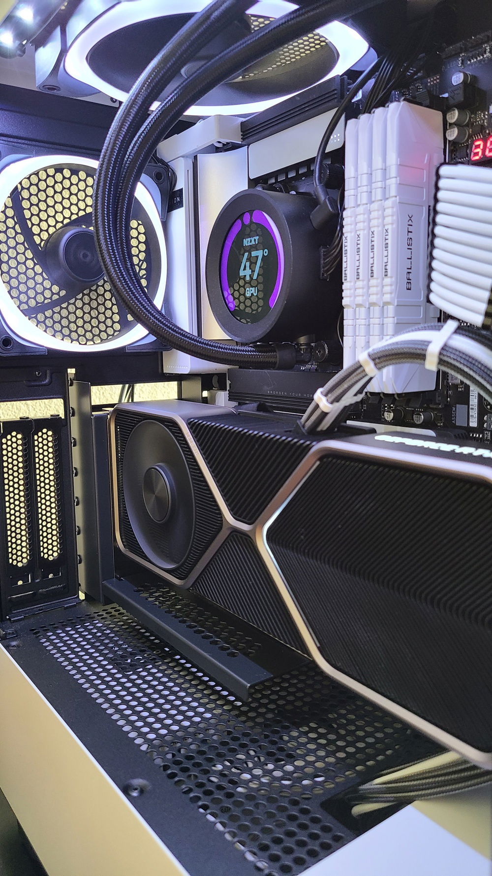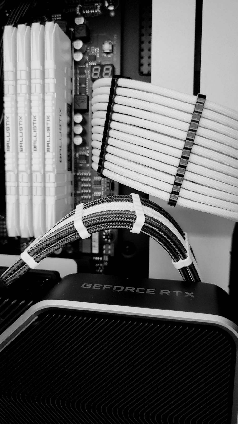 I had to build this computer in prototype mode while I waited for my CableMod custom cables to arrive and the 12-PIN Founders Cable to come out. So some of the photos you see are the computer running in protoype mode, and then a few months later (January now), I vertically mounted the GPU, installed the cables, and added additional RAM.