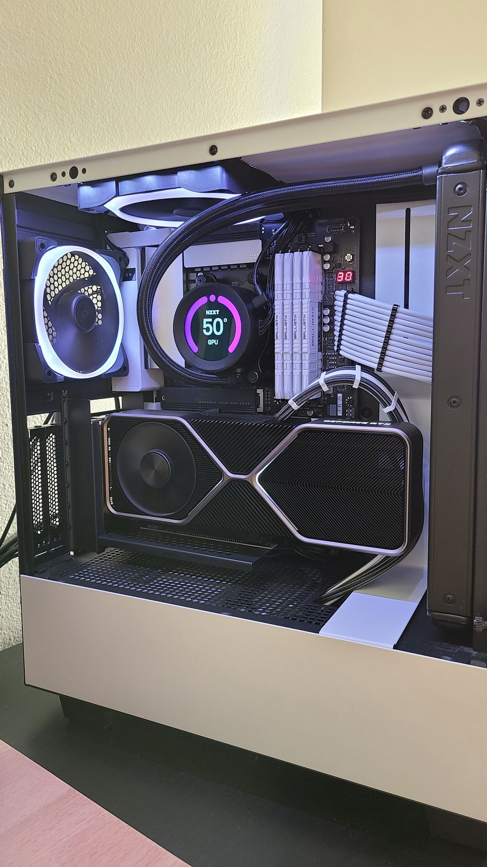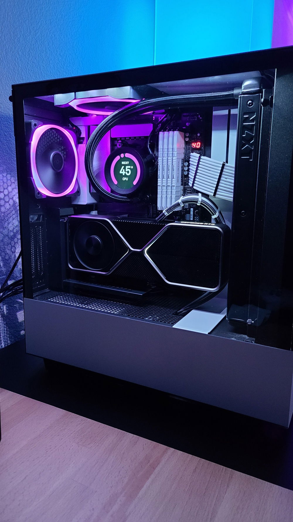 AIO: KRAKEN Z63. Total Aesthetics overkill purchase but idgaf. I love the look of it, the cooling is solid, and the ability to see temps on the screen is a very handy thing to have. Plus, adding gifs once in a while could be a cool way to customize the look. Overall I like the PC monitoring feature a lot, and worth it just for that.