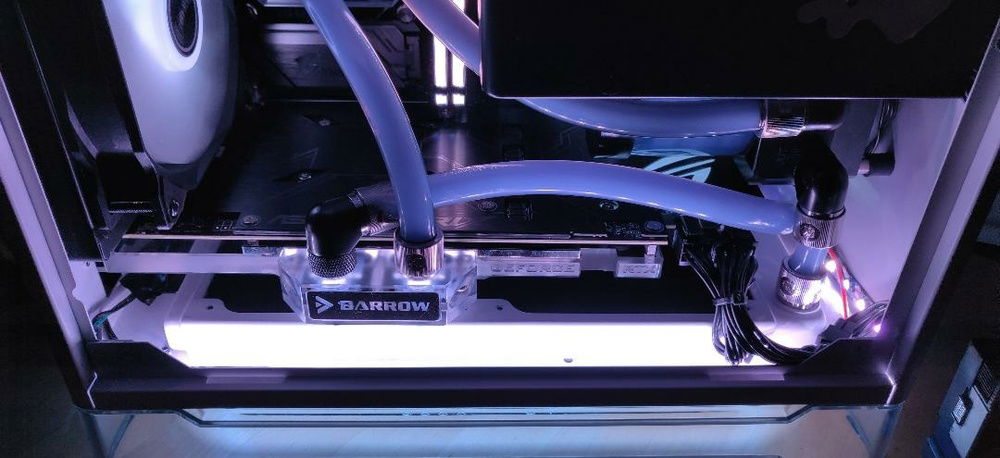 My first water cooled Mini ITX build. All I have left is to replace the Uphere fans with the 4 EKWB RGB 120mm fans when they get here and a few wire management problems. Right now the CPU is over clocked to 5.0GHz at 1.275 and no overclock yet on the GPU. InWin A1 White with 650W Power Supply Gigabyte Z390 I AORUS PRO WiFi Intel I7-9700K With EKWB EK-Velocity CPU Waterblock Corsair Vengeance RGB PRO 16GB (2x8GB) DDR4 3200MHz ASUS ROG STRIX GeForce RTX 2070 Advanced with Barrow RGB Water Block Intel Solid State Drive (SSD), 660P Series, 1 TB XSPC Ultra Thin 240MM Rad, EKWB 120MM Rad EKWB Res/Pump combo. Thank you to Performance PC's for the great selection water cooling parts and fast delivery.