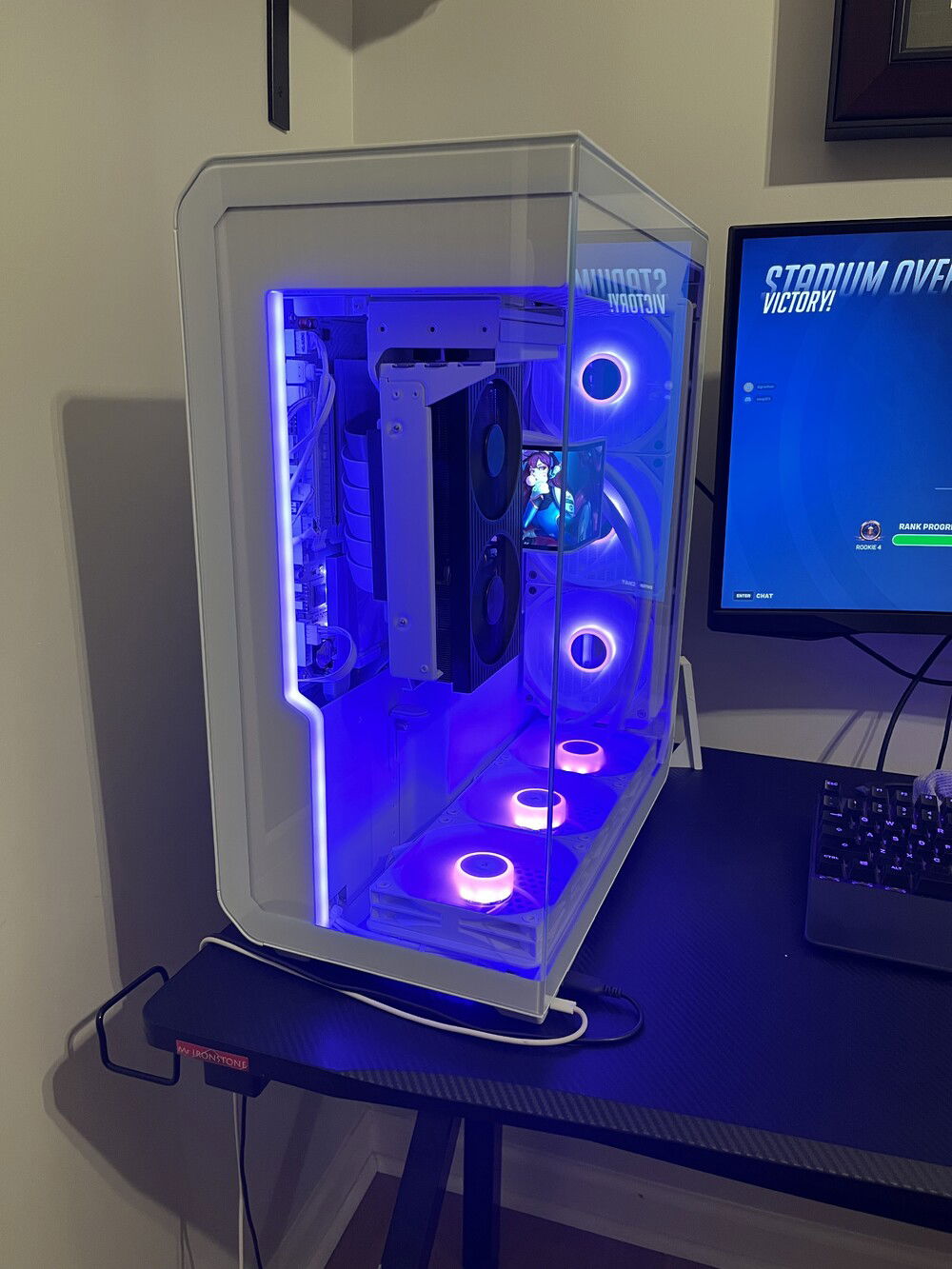 Left side white ssupd zhuttle build. Upgraded from Alienware R12, so I took the NVME and the 3060ti from that computer (it says 3080 in build because I couldn't find the right one). Will eventually upgrade to a white 3 fan GPU!! This is my first pc build and I'm in love. I really love the panorama screen on the AIO and the 24 pin ARGB extension cable really cleaned it all up.
