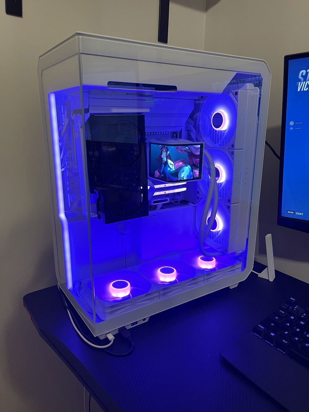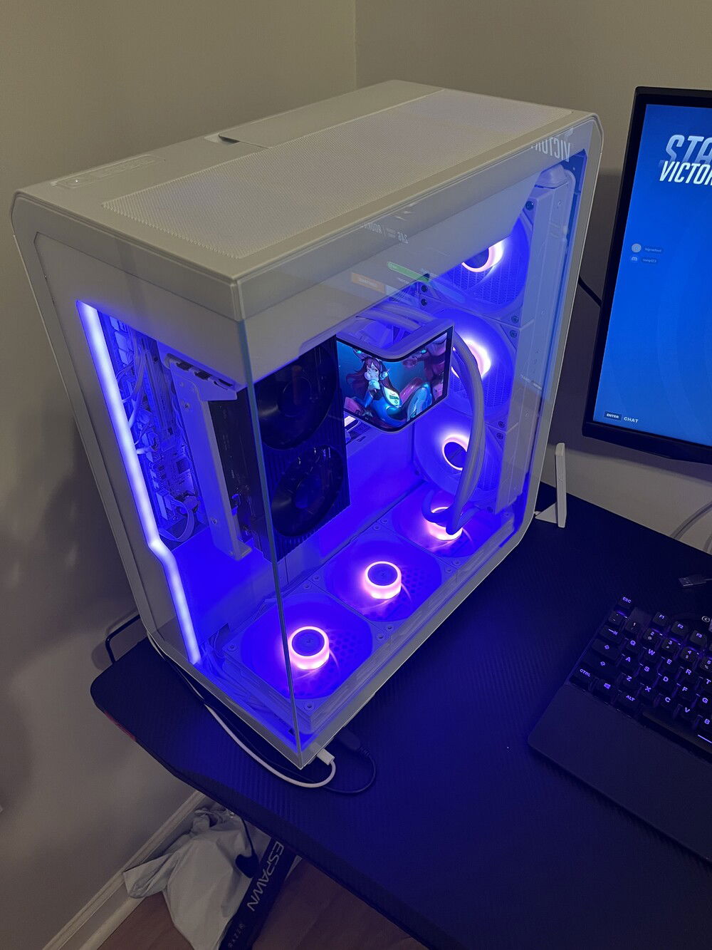 First Pc build! Will swap the GPU to a white three fan. Love the AIO and left side case. All white. SO BEAUTIFUL.