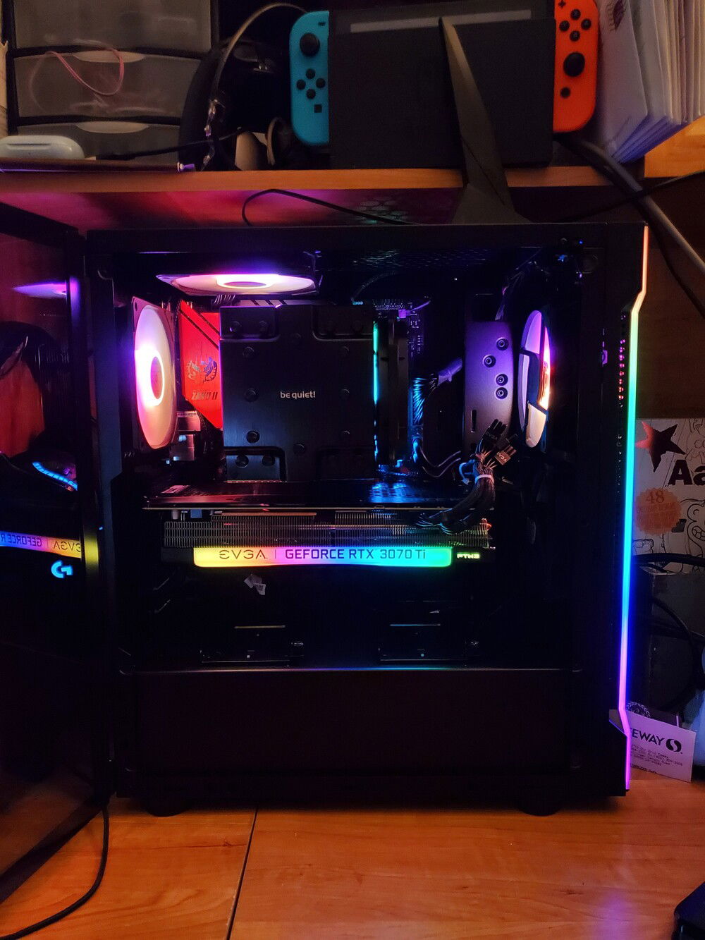 Originally when I got everything but the GPU (foolishly thinking we wouldn't have to wait too long to get a 3060TI twin fan style GPU was the plan at the time), put everything listed into the case, and thought I could use my old GTX 970 to get her by with that...Forgot that card died a couple of days before my 2060 showed up, so 10 months later we finally sniped the EVGA 3070TI for current MSRP on Amazon of all places and then found that the cable ducting on the motherboard side of the case was 10mm deep in the way of the card slotting into place, so I had to drill a 4 inch vertical section by 10mm wide of that out of the way and now she is up and running on her new first custom built office workstation/gaming PC (previous PC she had was an old HP Pavilion from early 2000, everything since then has been a laptop every five years or so).