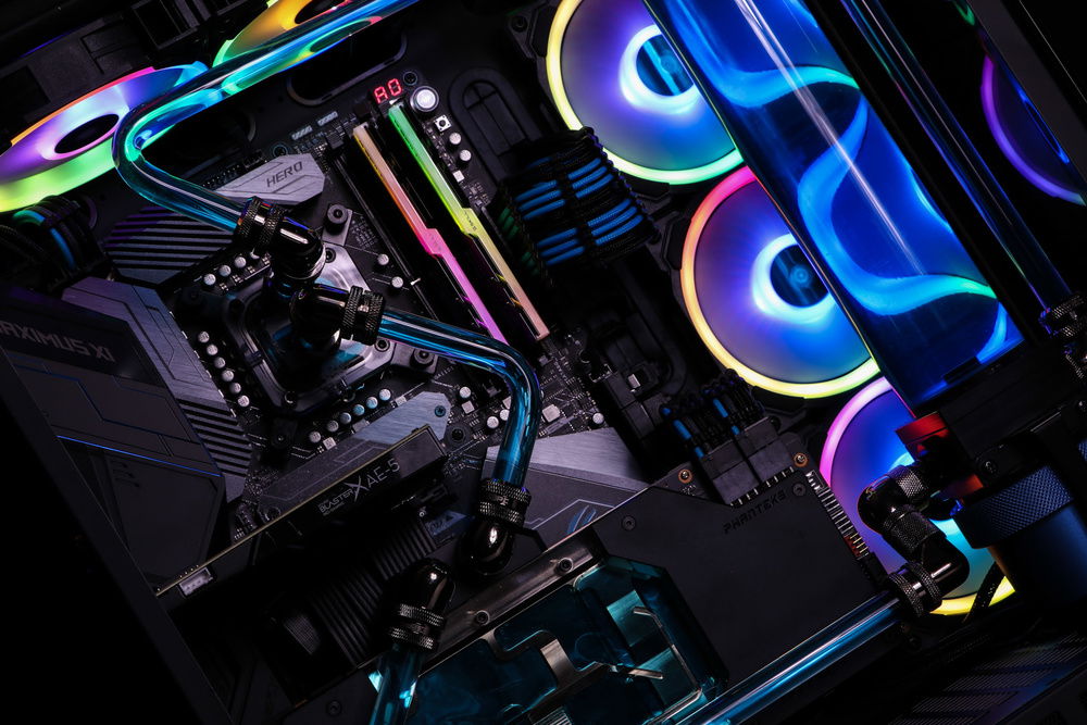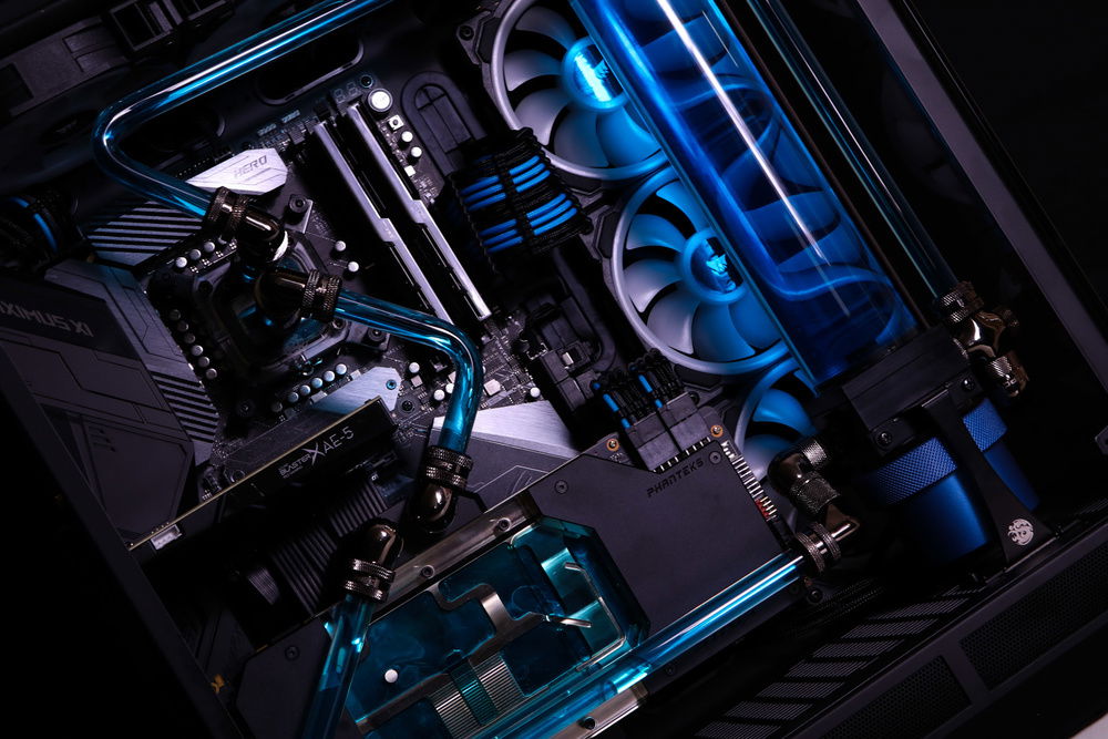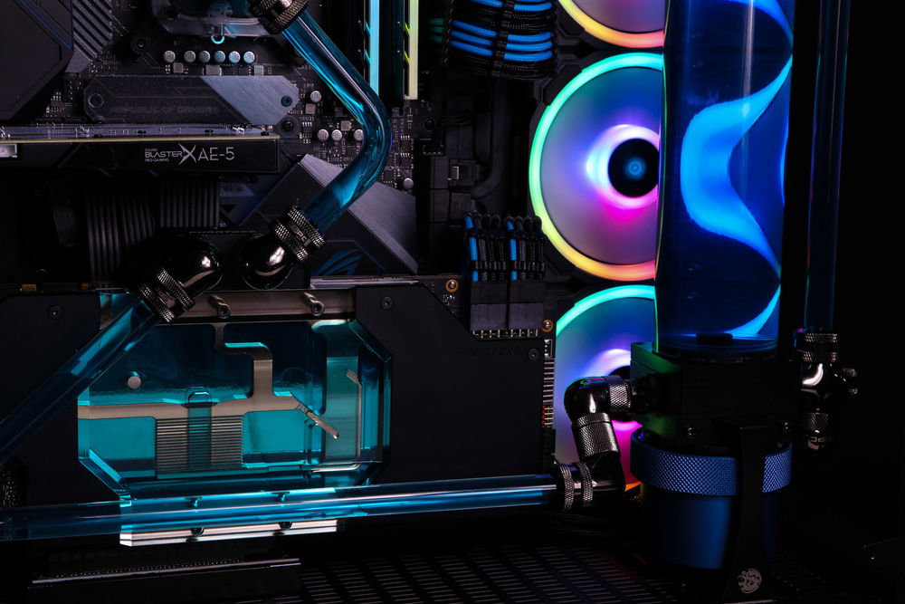 9900k delided and sanded Asus Maximus XI Hero wifi (yeah the vrm layout isn't great but works and I got the board for less than 100 so there's that) Evga 1300 G2 Strix 1080ti Creative Ae-5 Trident 4000 960 1tb nvme 2x 500tb samsung ssd 1x 4tb black Lian Li pc-o11 WGX Rog edition
