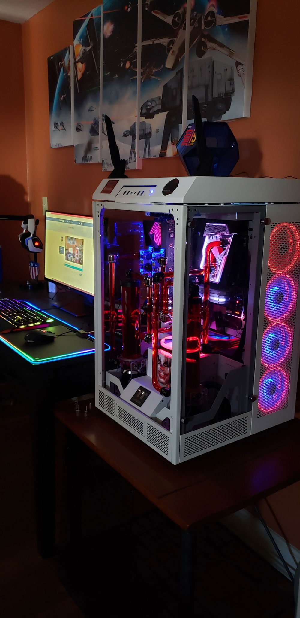 I am a HHN fan, I love Halloween, my picture was taken during my HHN VIP tour, it has motivated my choices of colors for my gaming PC. Even though this build will be Fully RGB and I can make it look like a rainbow unicorn puked in it, it will be dimmed to a nice complementary Red to match my coolant. I am excited and I will be trying to apply something that will make this stand out.