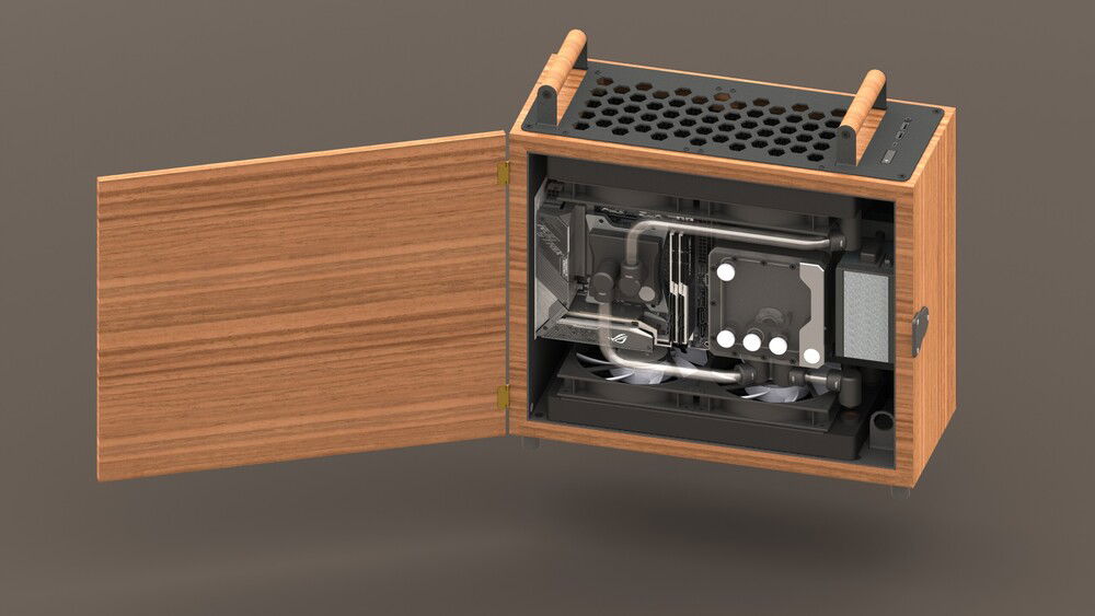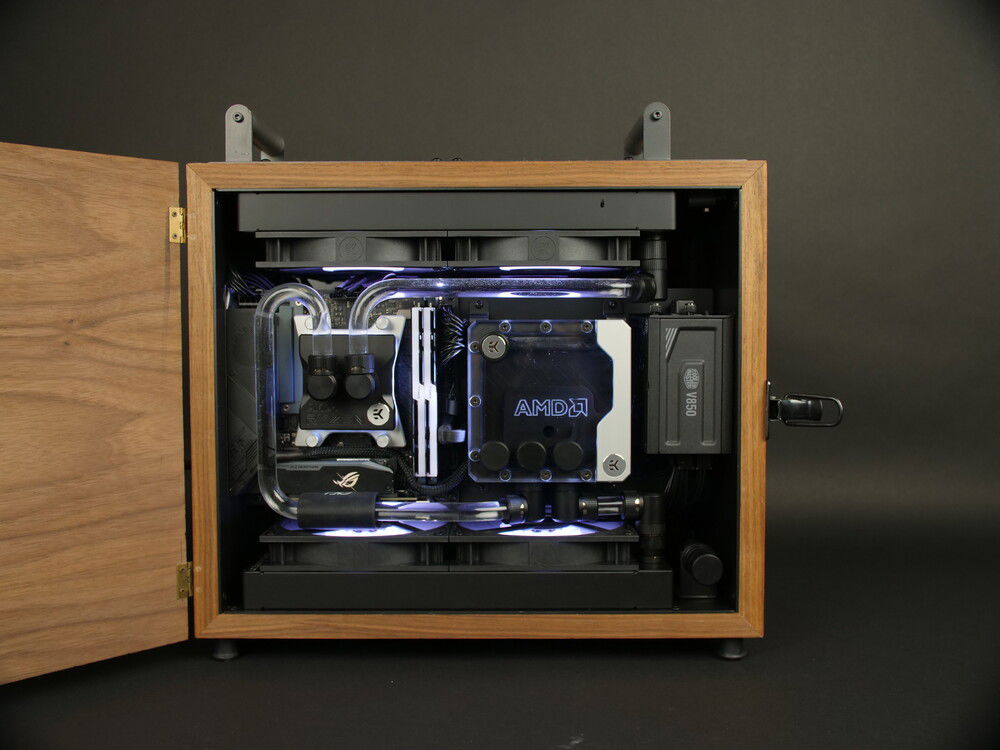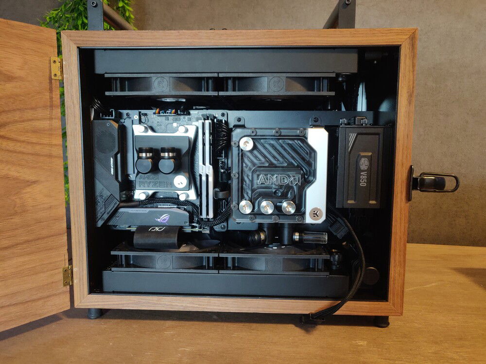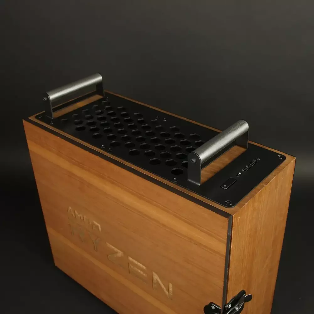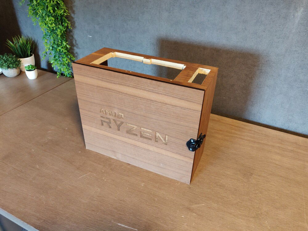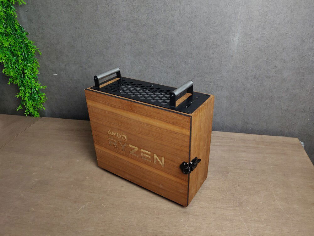 SFF build based in a modded wooden review box AMD sent out for first gen Ryzen cpu's to various media outlets.