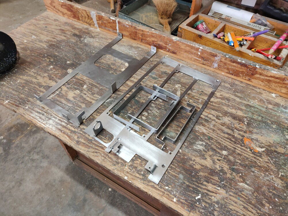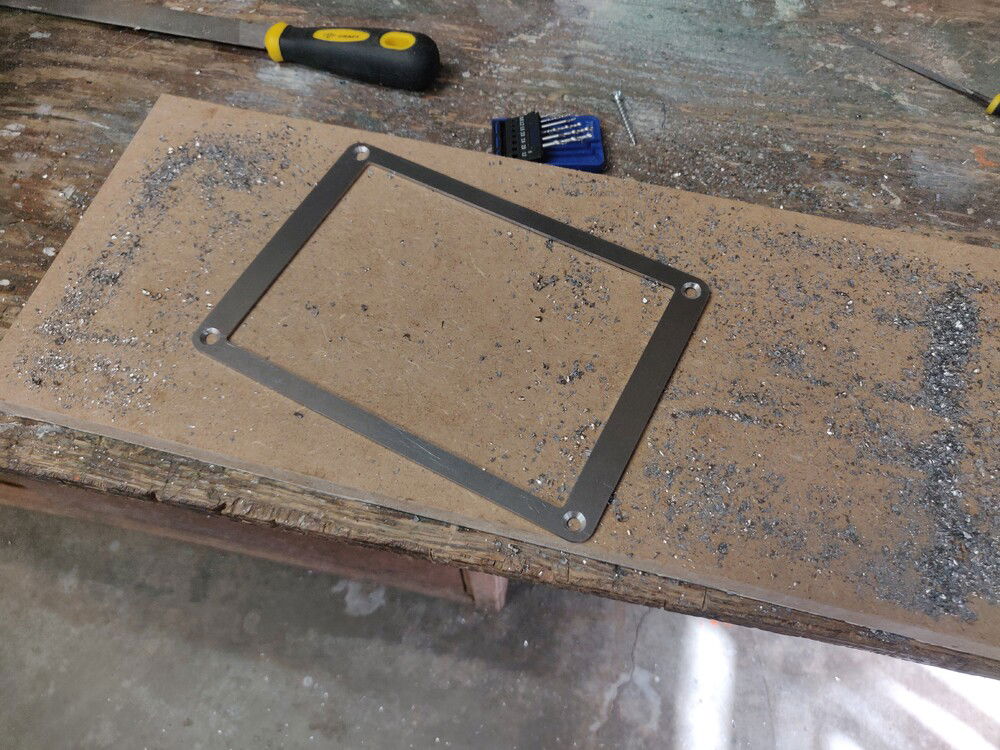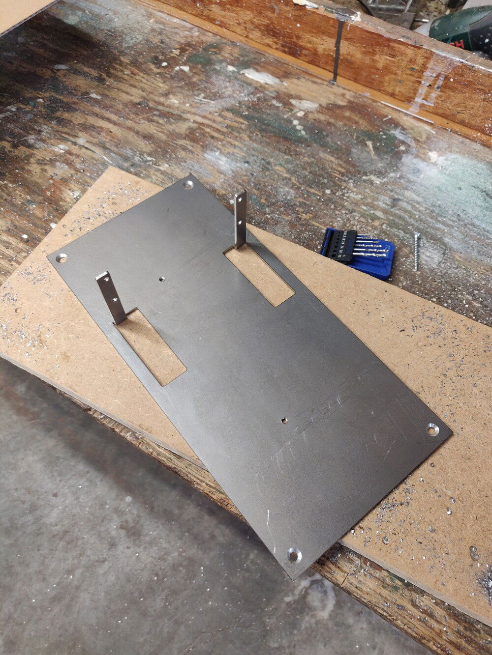 After the design it was time to get the sheet metal frame made. This was done out of 2mm steel to give it strenght and being able to tap threads. Once it arrived it needed some small clean up and counter sinking for all the mounting holes.