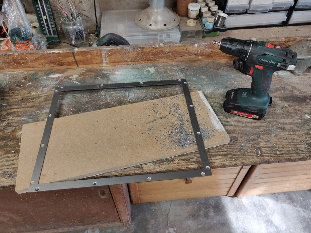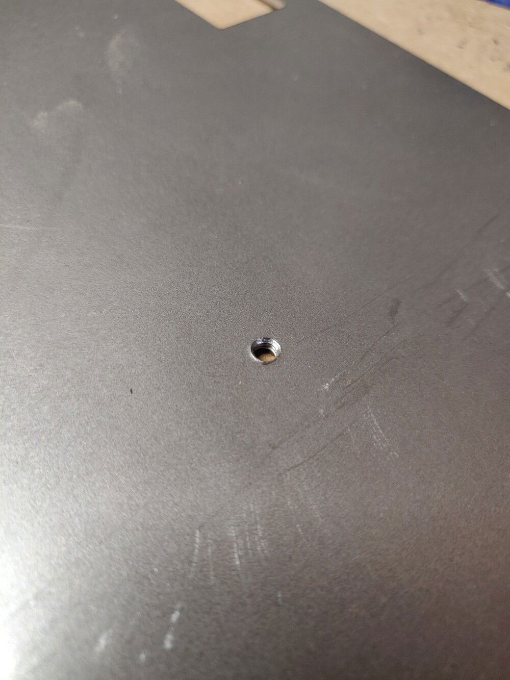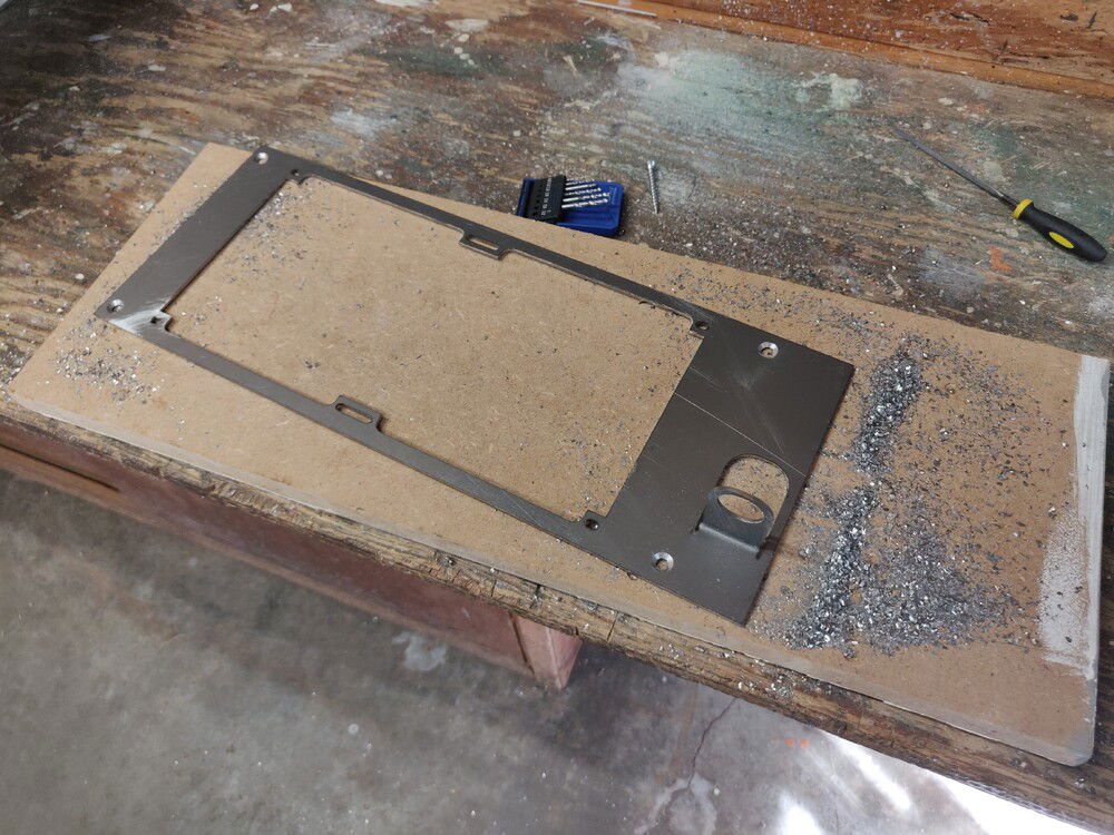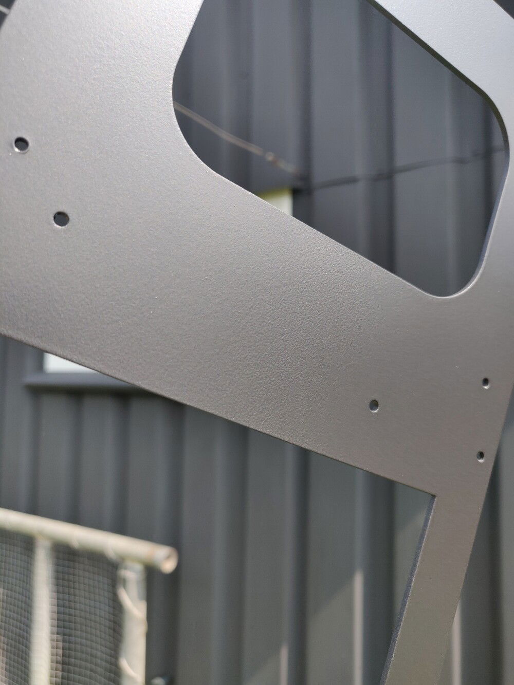After the design it was time to get the sheet metal frame made. This was done out of 2mm steel to give it strenght and being able to tap threads. Once it arrived it needed some small clean up and counter sinking for all the mounting holes.