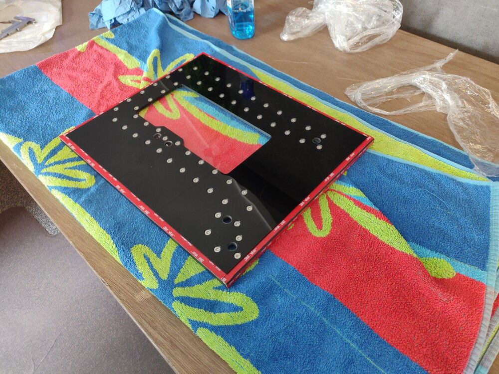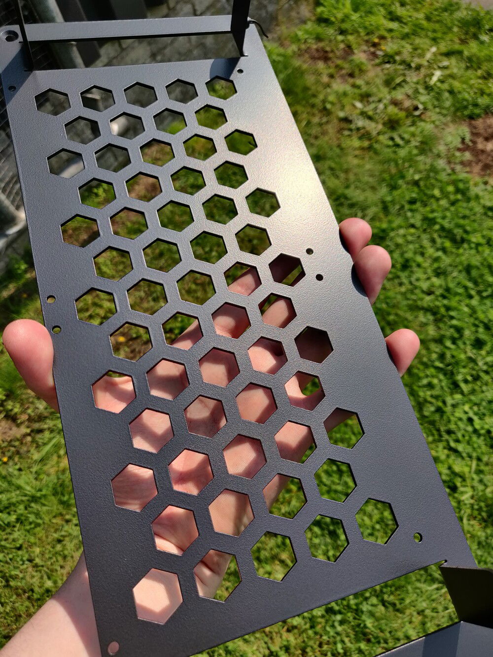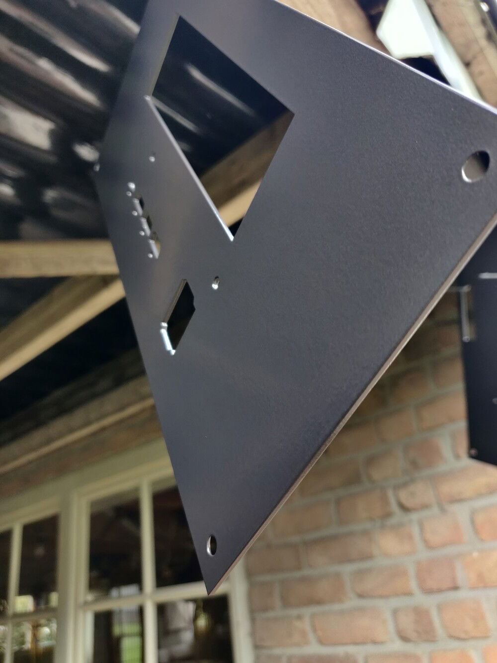 One small tweak needed to sheetmetal for a perfect fit in the box. Sanding all parts to prep them for paint. After cleaning them painting with SteelIt and let them dry in the sun. Look at this finish :o