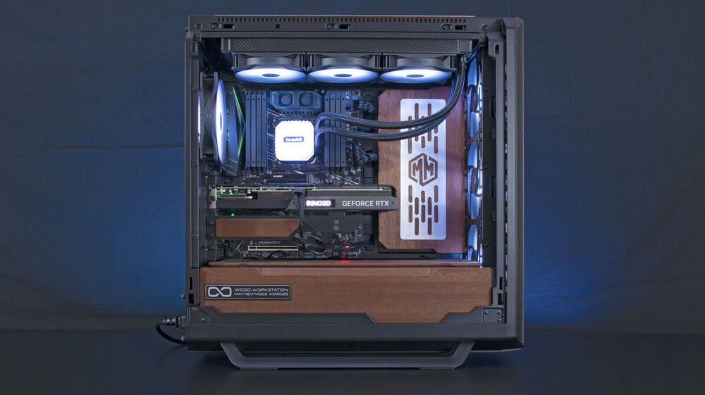 I created this pcmod workstation for professionals, inserting wooden parts (solid mahogany) and replacing some others of this be quiet silent base 802 case.