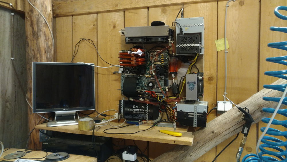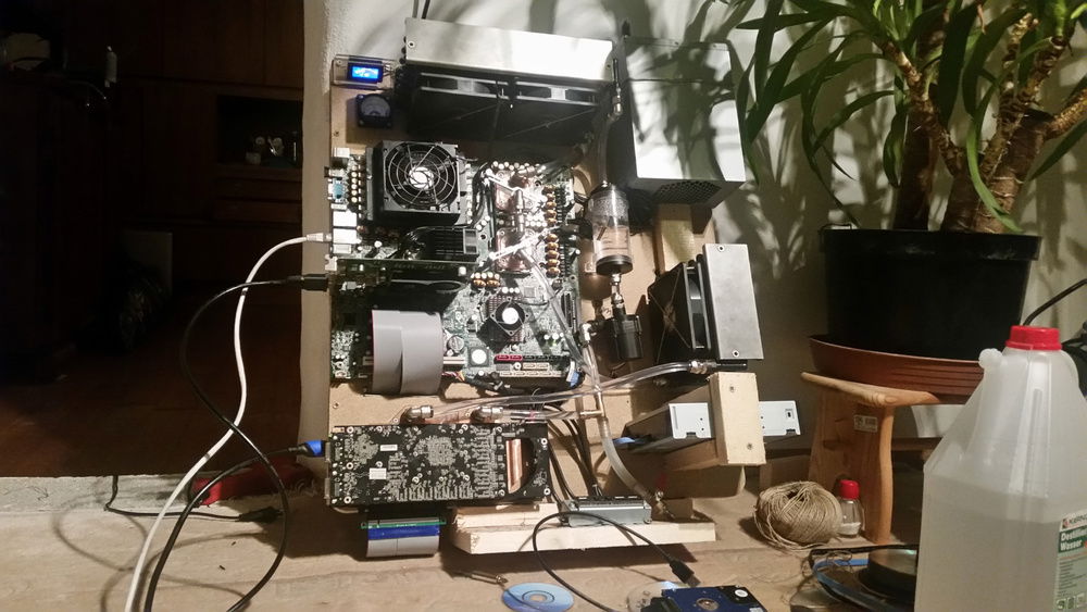i know this configuration does not make a lot of sense but i had lots of fun building it. The base is a HP XW8600 workstation that means a dual xeon board socket 771. It also has a raid 5 array with 8 hdds each 1tb capacity. 32GB of ddr2 ram and of course watercooling. It took me i think 4 months to build this and it was a lot of pain in the ass because half of the stuff i bought was not or not properly working. It rocks win 10, server 2012 r2 and win XP. the hardware list is mostly not correct because this is realy funky hardware. if you have any questions feel free to ask.
