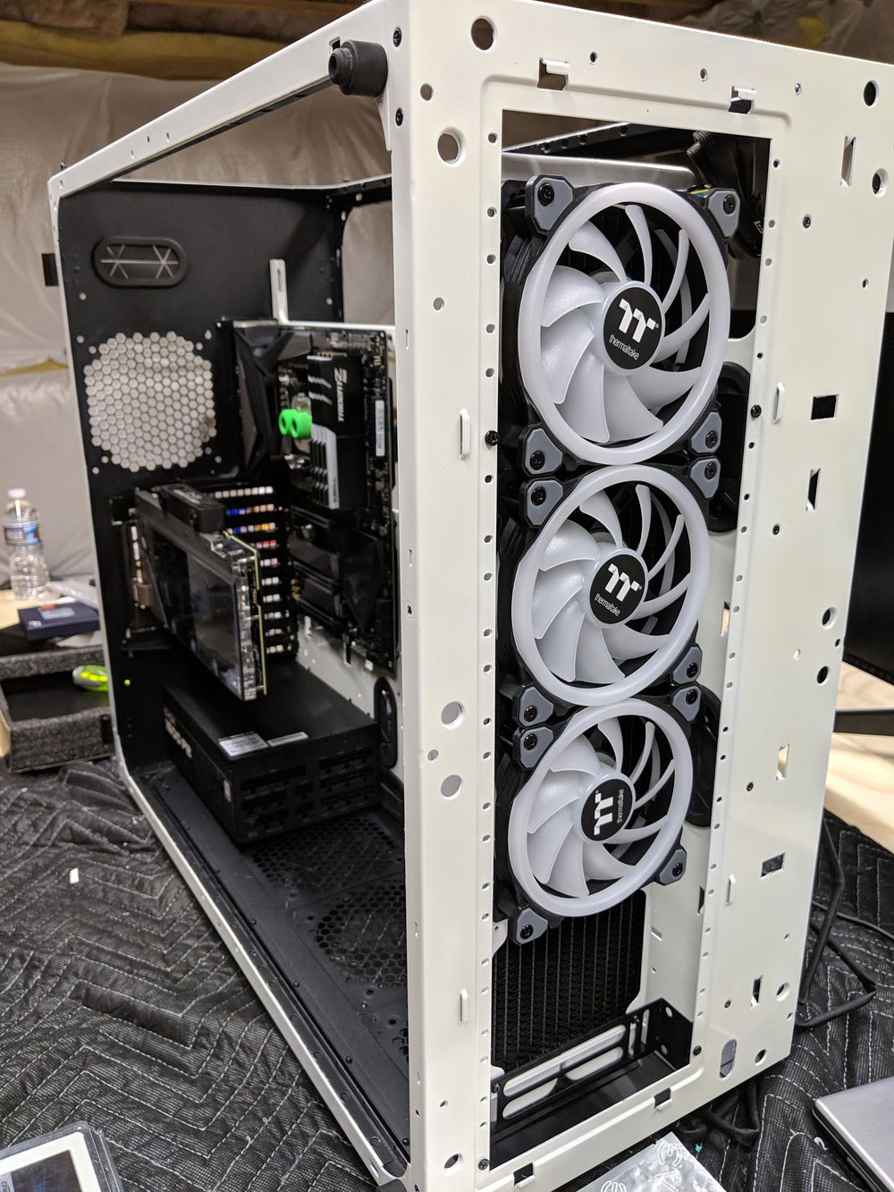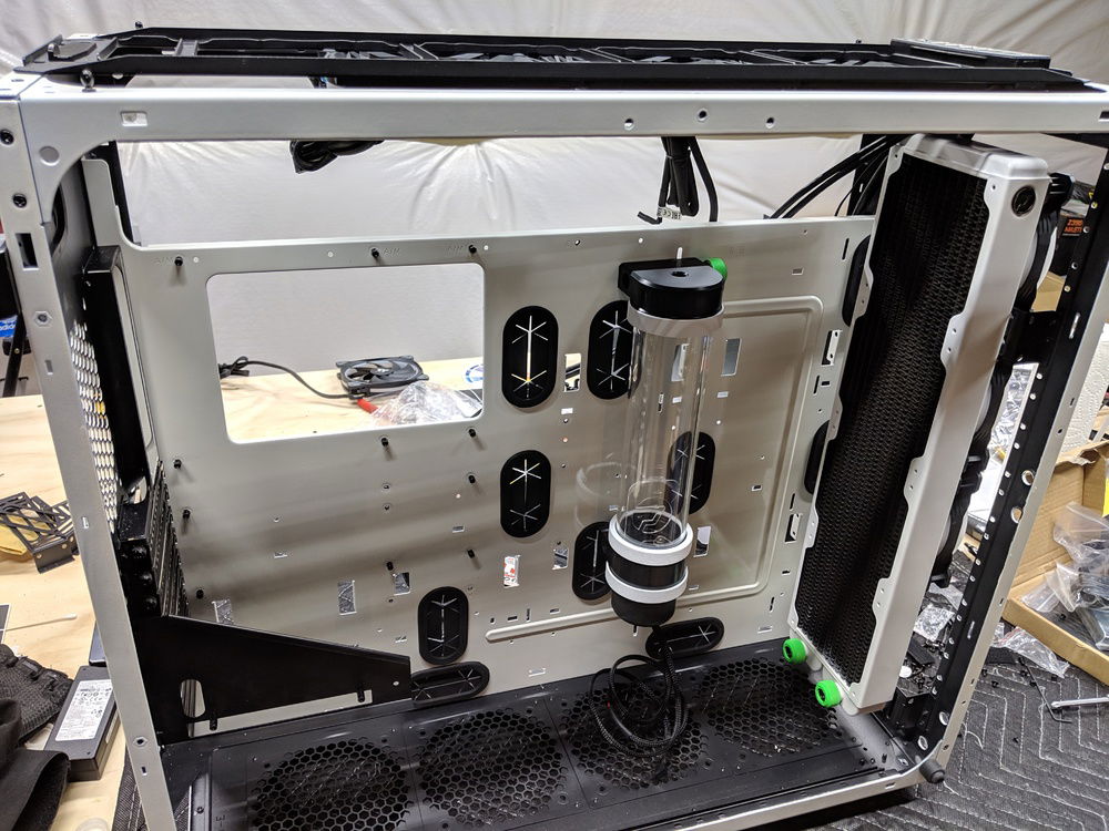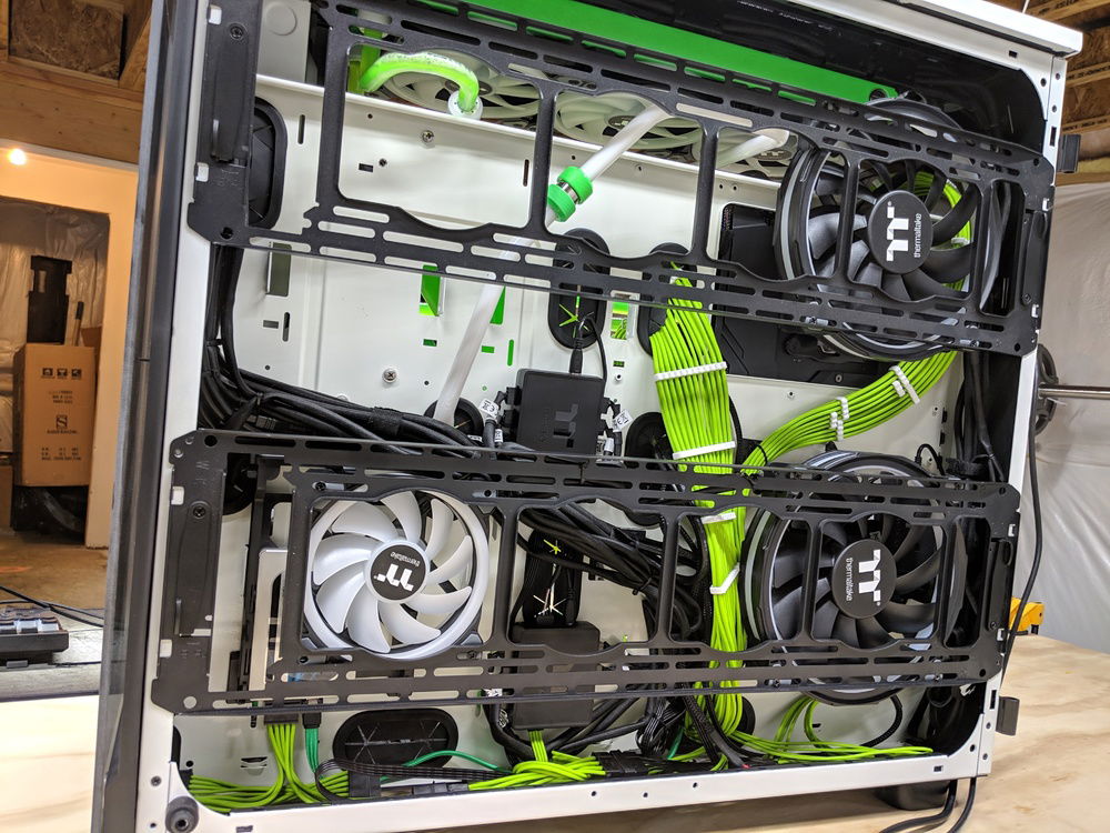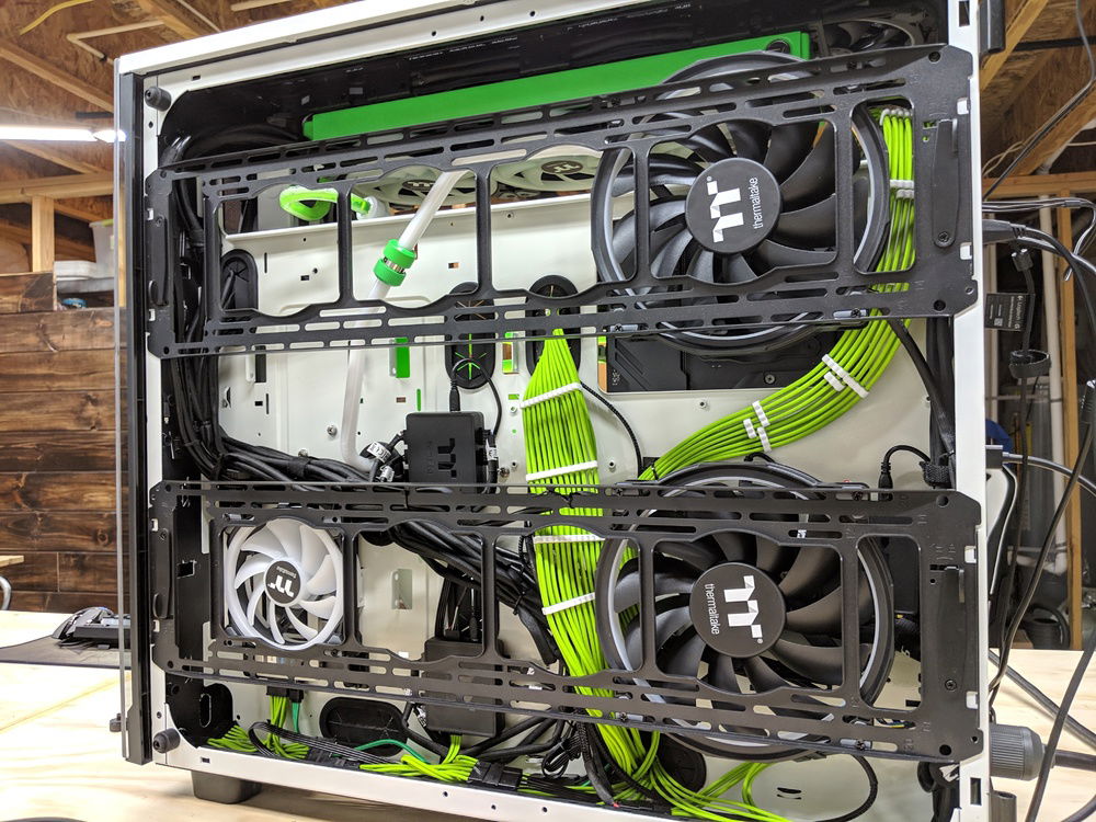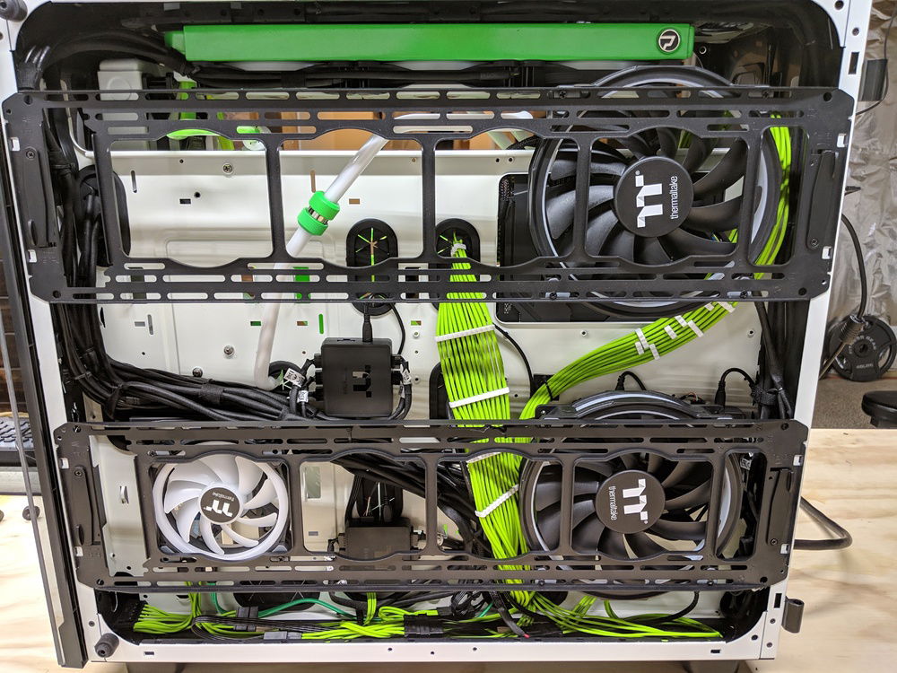 the thermaltake view 91 is a massive case with 0 cable management assist... Cable management was one of the things that took alot of attention to detail to make look good.