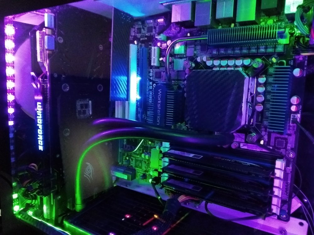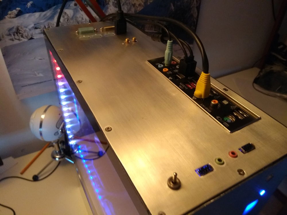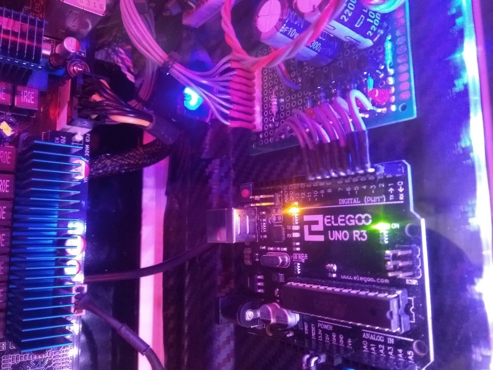 all the lighting is controlled by an arduino UNO connected to the internal usb for on the fly software modifications. in the future the arduino will control the white leds on the motherboard for a flashing from live stage type of lighting.