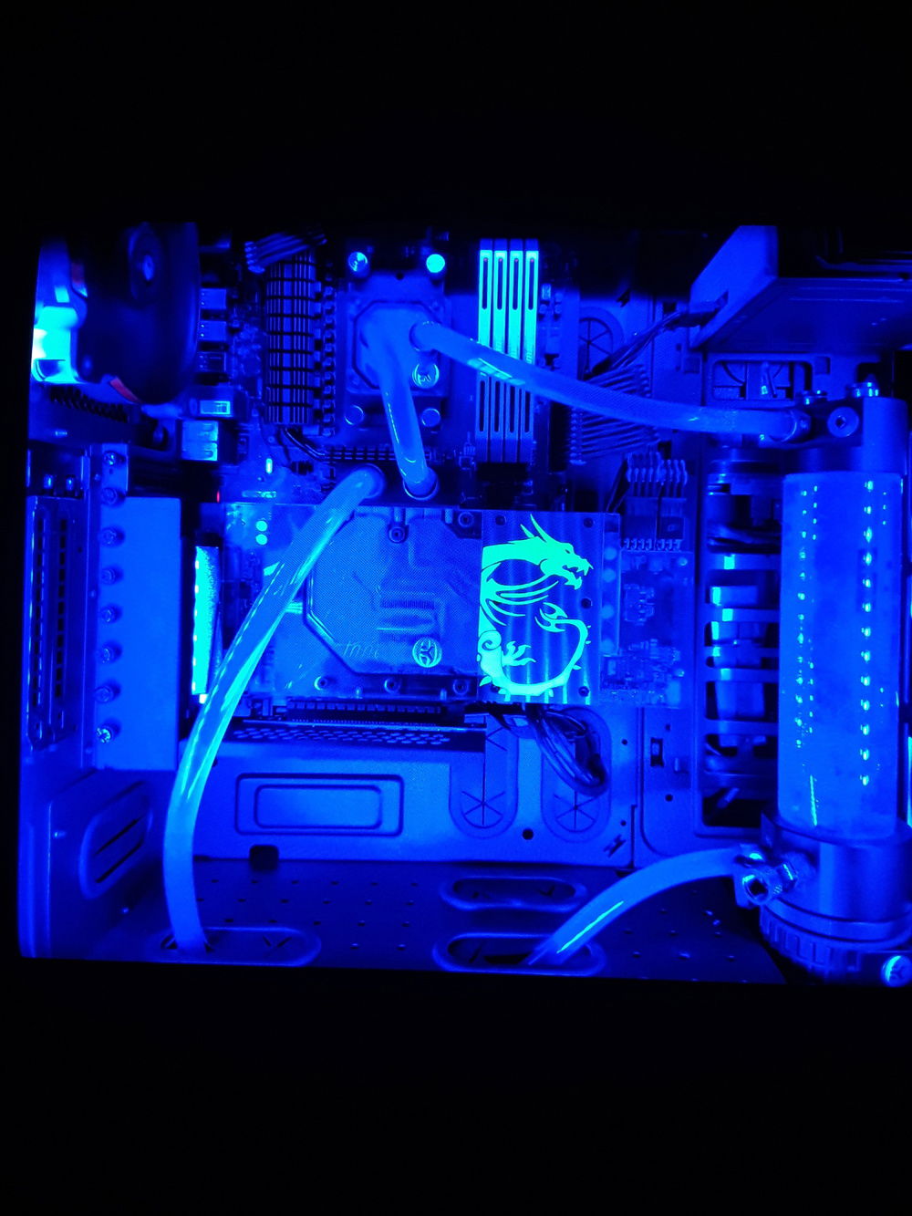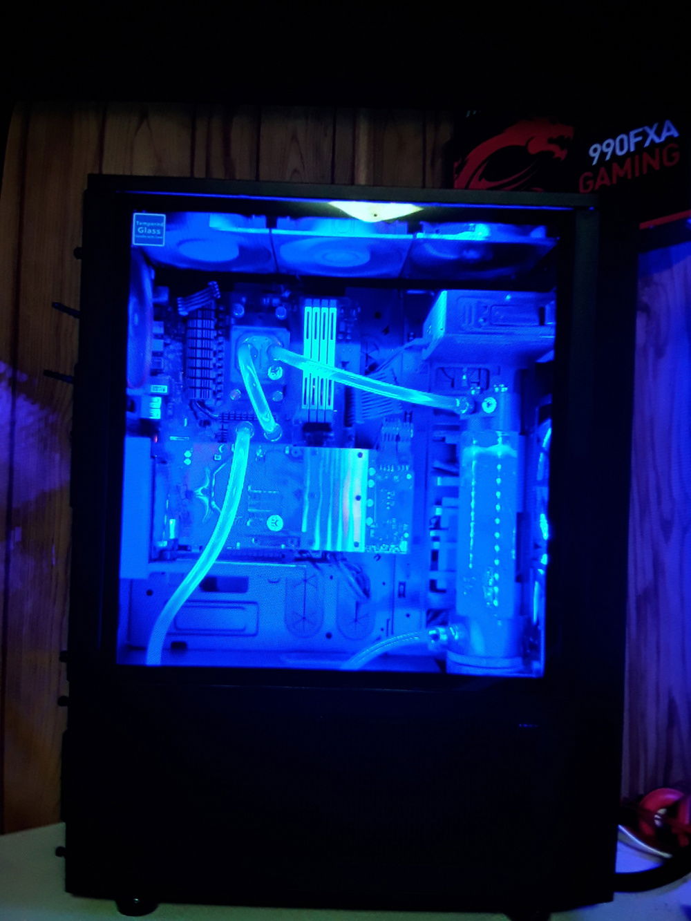 This is an older build I did a few years ago, when I build a new one my daughter wanted this one so I gave it to her and she likes the yellow dragon so that's how it got its name. It's a FX 8350 with a EK water block and a R9 390 with EK water block, 200mm rez and a 280mm rad in the bottom. It has 32g of Dominator Platinum Ram, the case is the thermaltake core 71 with tempered glass. I couldn't find my GPU on list so I just put the 380 in there ,it looked the same as mine but mine is 8g